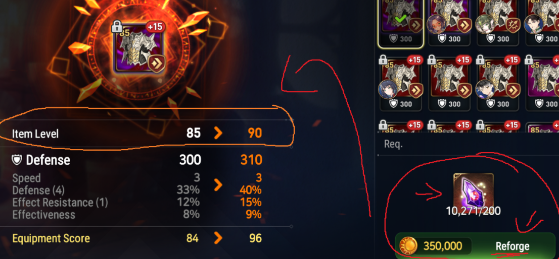 1. Good gear generally means a synergistic piece with high-quality rolls. If I'm a DPS that scales with attack, I'm not gonna upgrade a % hp, % defense piece and slap it on them. If I want a competitive piece, I want near-perfect substats with mid- to high rolls when upgrading them. You can use the in-game system of "Equipment Score," which tells you the quality of the roll ranges. For new players, anything that's above 80 is decent enough for PvE. 90+ PvP and PvE. Anything over 100 is very high-quality gear. But remember, just because the roll ranges are good, doesn't mean it's the best piece in town. If the substats don't match or make sense, it doesn't matter if the roll ranges are high.