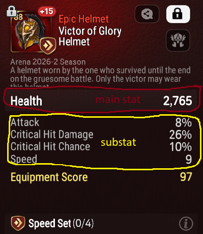 Main stat in red, sub stat in yellow* This logic applies to all types of gear.