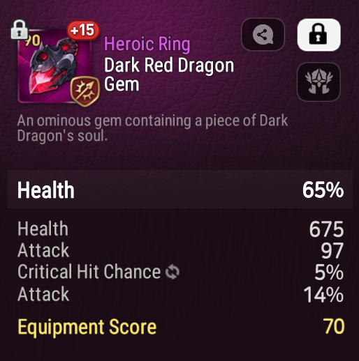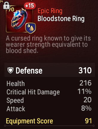 | Ring: | Flat or % Attack | Flat or % Defense | Flat or % Health | Effectiveness | Effect Resistance |