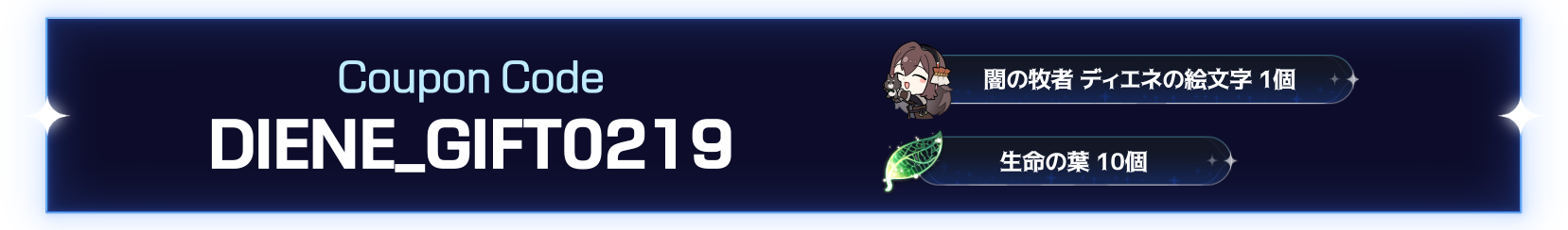 1.クーポン番号:DIENE_GIFT0219