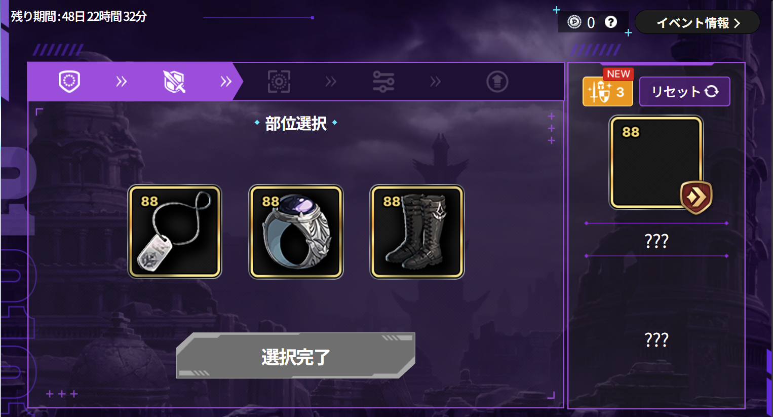 ・イベント期間終了まで確定しなかった装備は獲得できなくなりますので、必ずイベント期間内に装備確定をタップしてください。