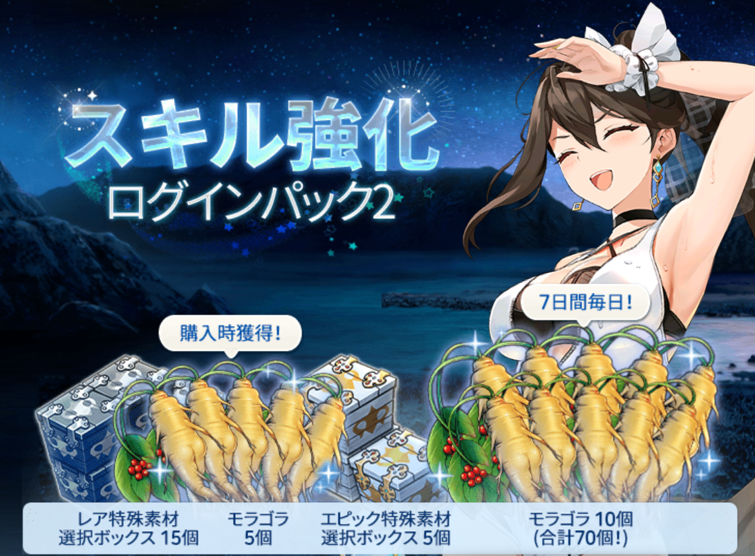 スキル強化ログインパック2 | モラゴラ(即時支給) | 5 | ||
