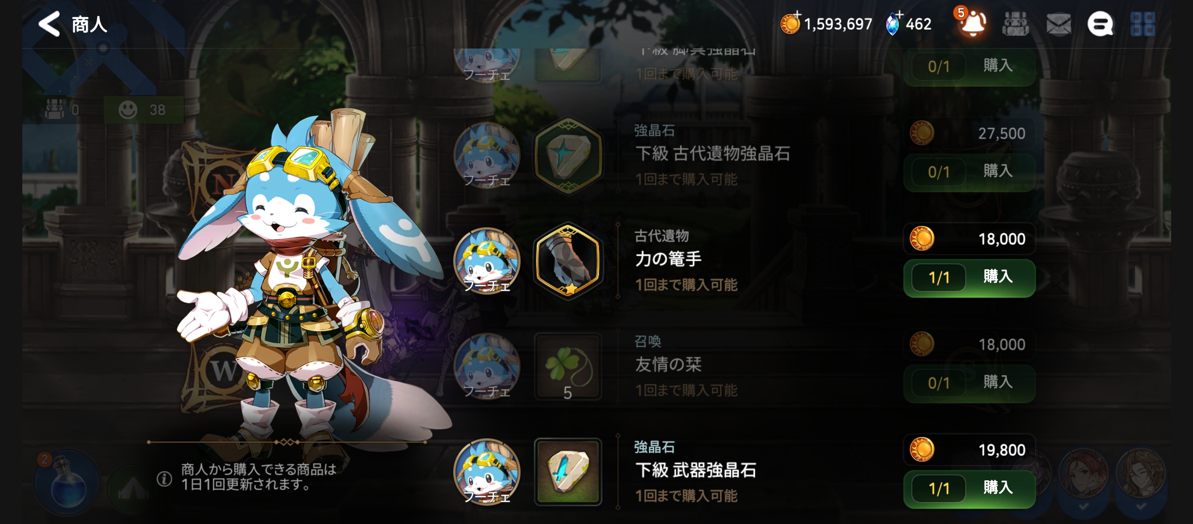 글상세不具合の通報 迷宮内フーチェショップでの友情の栞残存の件 Rank 70 レインデル[STOVE145243235] 2026-02-24 18:30 2026-02-25 03:30 (+09:00) view count 23 MYホームを見る 作成した投稿/コメントを表示 通報する シェアする いつもエピックセブン楽しませて頂いております。今回は先日アプリ更新における変更の際、使用用途が無くなった友情の栞が購入枠として残っていたので一応不具合として書かせて頂きます。強制的な入手ではなく購入判断での獲得である為、それほど気にする事ではないとは思われますが用途が無くなったアイテムである為ご報告させて頂きます。 コメント 0 alarm 通知を解除しました。 新しい順 新しい順 登録順 おすすめ順 コメントを入力するには ログイン してください。 確認 キャンセル 確認