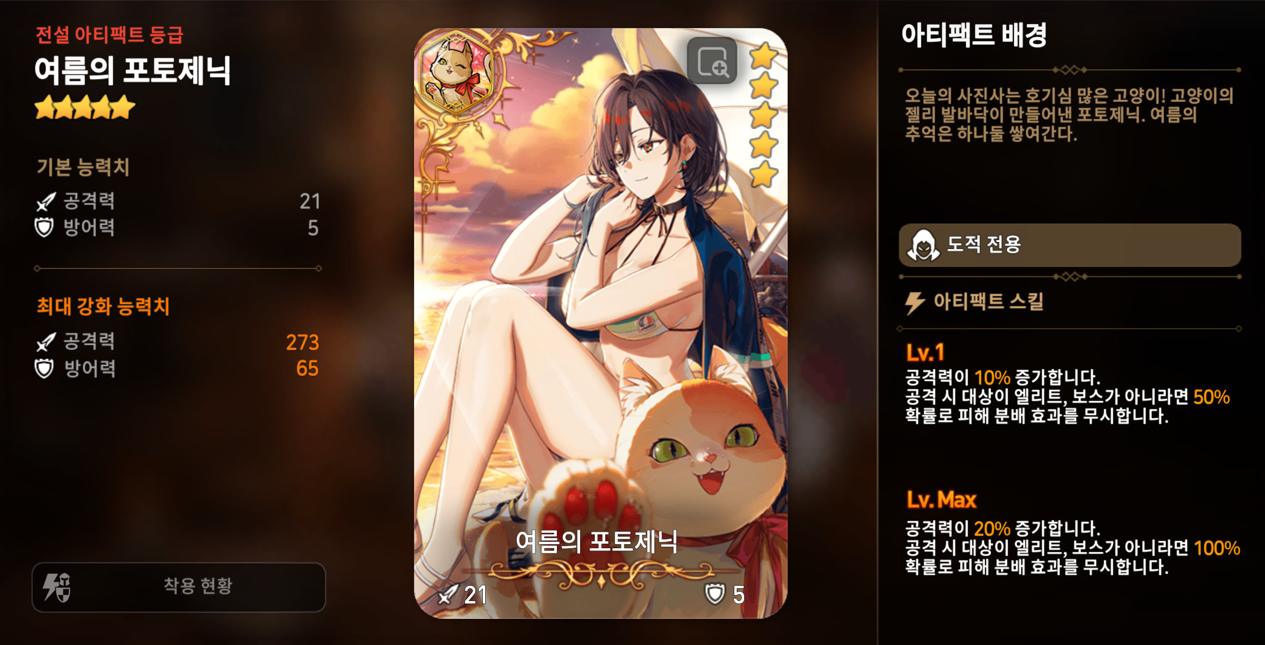 아군이 공격이 아닌 스킬 사용 시 추가 스킬을 사용하여 적을 공격하고 강력한 전체 공격으로 적을 제압할 수 있는 냉기속성 도적 ‘은빛 해일 화영’과 공격력이 증가하고 공격 시 엘리트, 보스가 아닌 적의 피해 분배 효과를 무시할 수 있는 도적 전용 아티팩트 ‘여름의 포토제닉’을 한정 소환 확률 UP!에서 만나보세요!