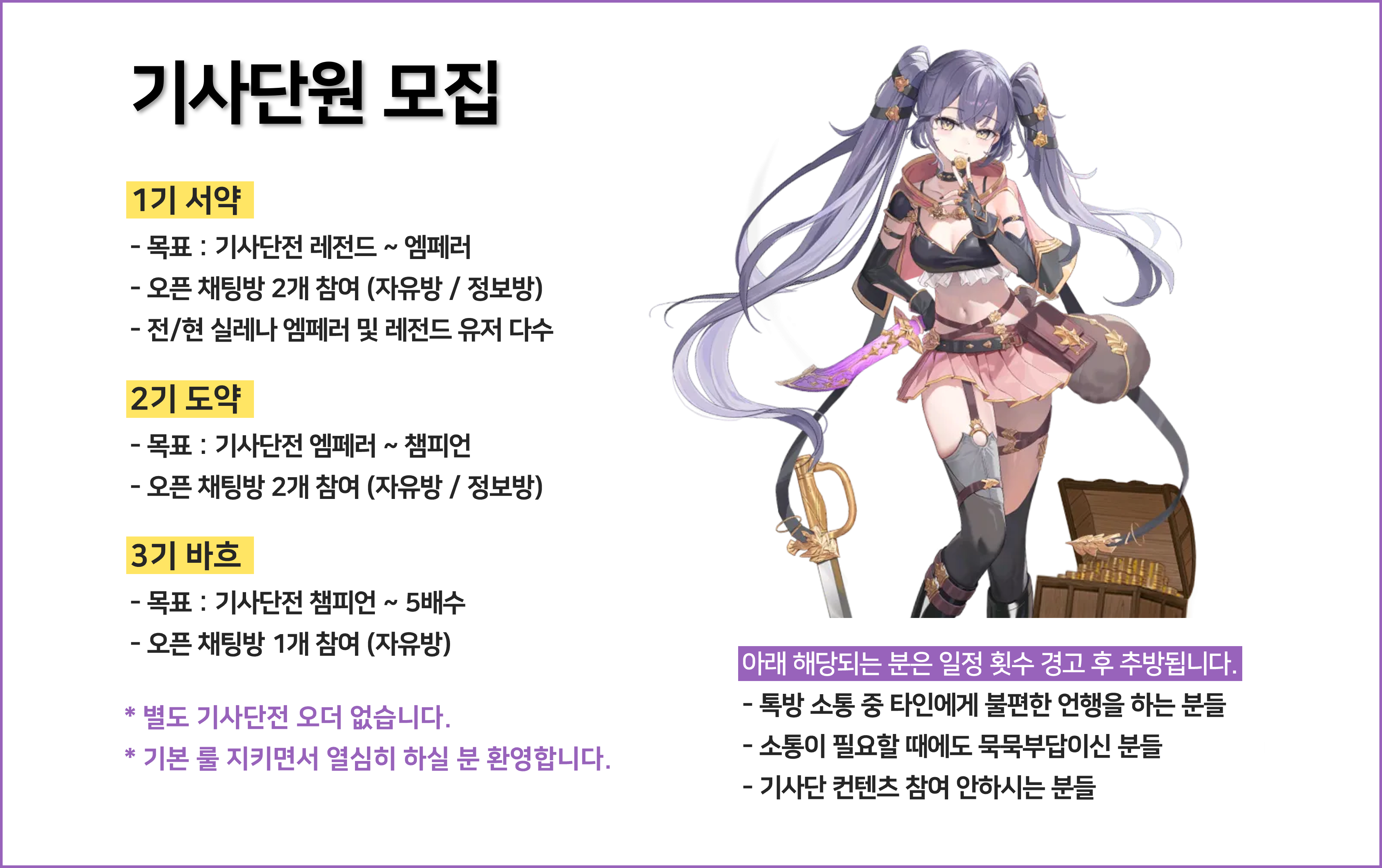 기사단전 오더 없이 열심히 하실 분 환영합니다!