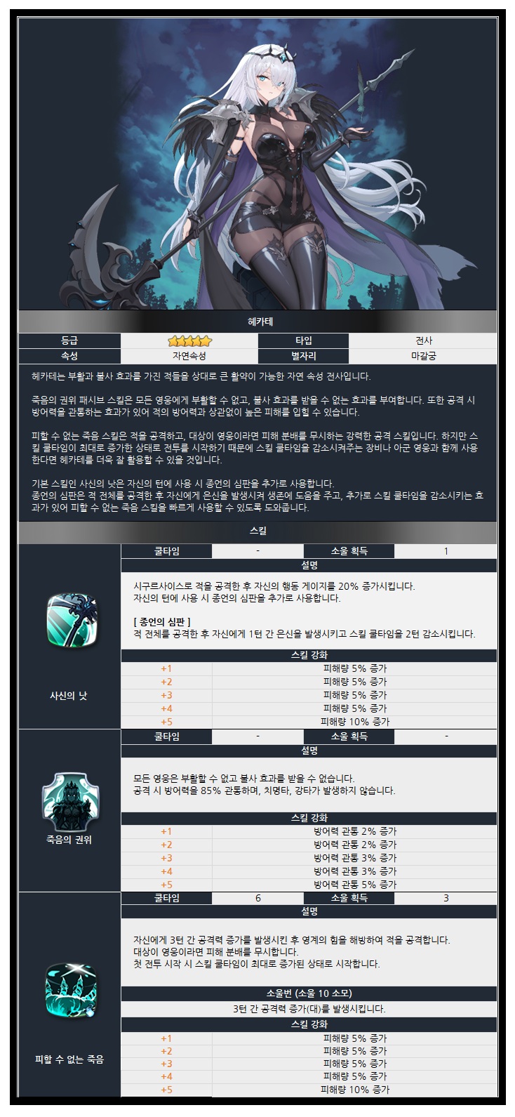 부활과 불사 효과를 가진 적들을 상대로 큰 활약이 가능한 자연 속성 전사 헤카테와 공격 시 치명타가 발생하지 않았다면 피해량이 증가하고, 대상에게 자신의 공격력에 비례한 추가 피해를 발생시키는 전사 아티팩트 수명의 서를 소환 확률 UP! 에서 만나보세요!