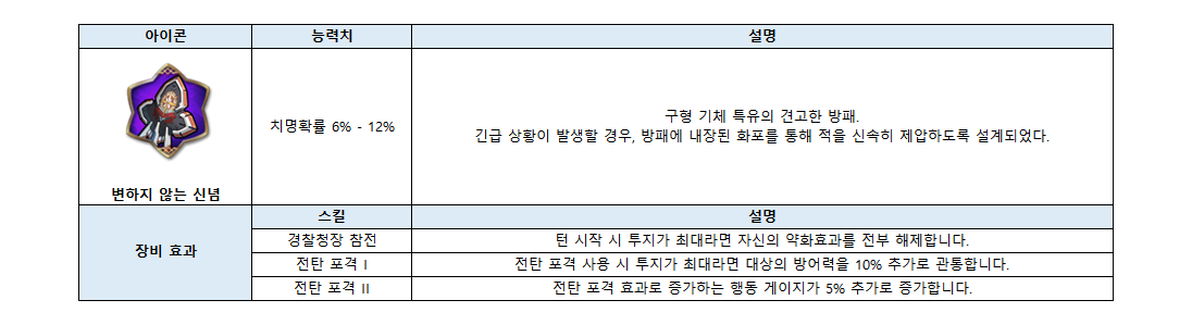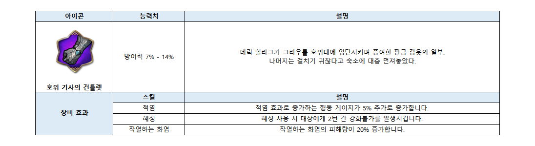호위대장 크라우 | 전용장비 추가 스탯 변경 |