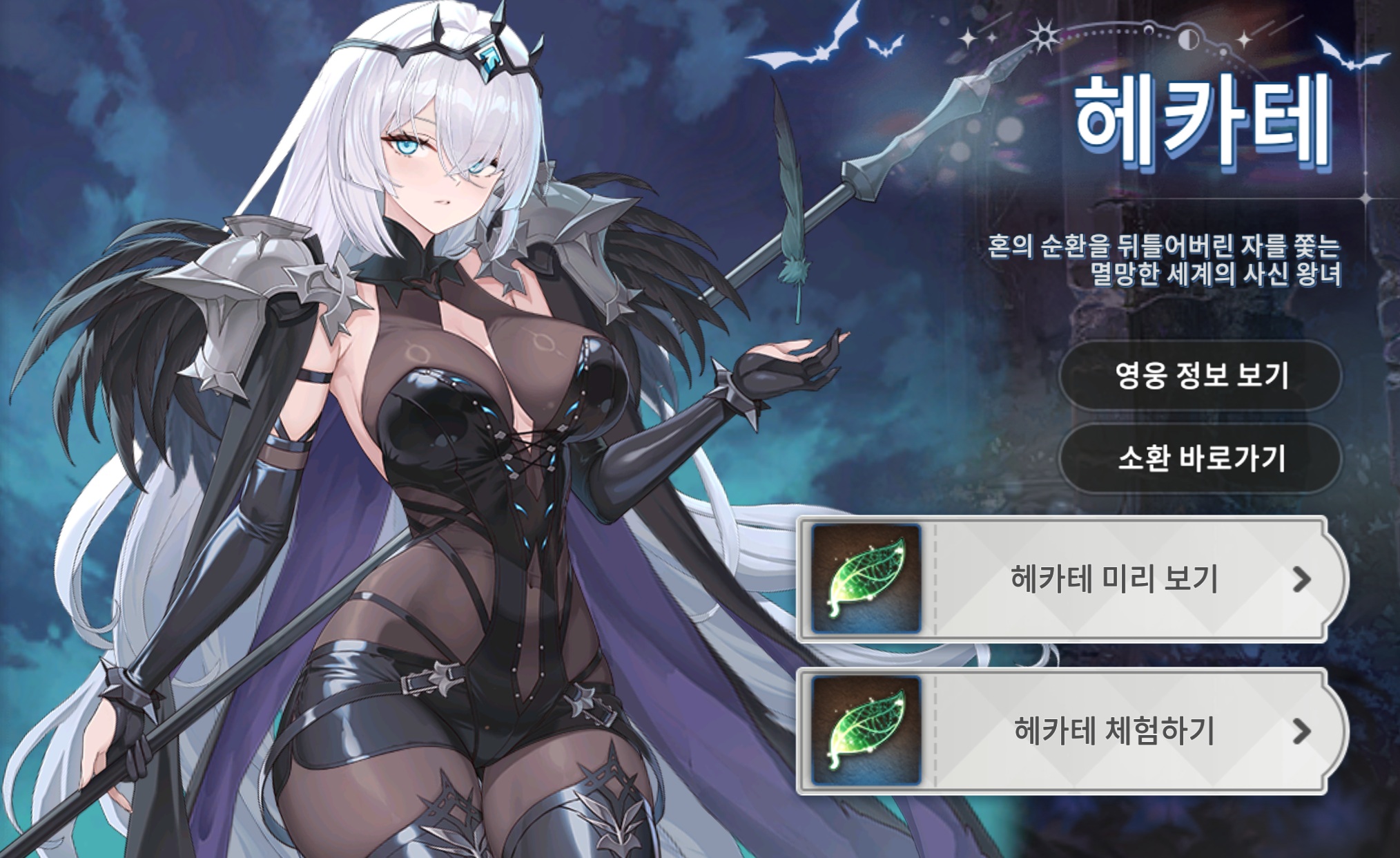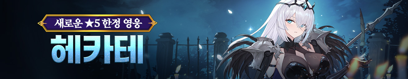 새로운 ★5 한정 영웅 헤카테는 한정 소환을 통해 만나실 수 있습니다.