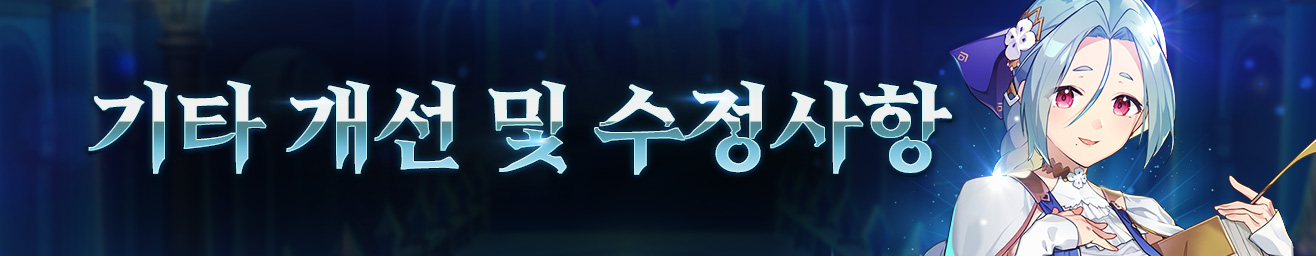 - 일부 뮤직 플레이어의 에피소드 앨범명이 변경됩니다.- ★5 영웅 셰나의 [불굴의 투지] 스킬에서 피격 시 발생하는 추가 피해 효과가 "추가 피해"가 아닌 "피해"로 노출되는 현상이 수정됩니다.* 툴팁 변경으로 실제 성능은 변경되지 않습니다.