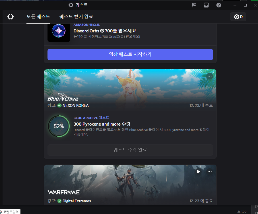 글상세자유 게시판 블아 디코퀘스트 [4] Rank 70 무등산막걸리[무등산막걸리] 2025-12-17 05:27 2025-12-17 14:27 (+09:00) view count 127 MY홈 보기 작성글 보기 신고하기 공유하기 디스코드 퀘스트 들어가서 퀘스트 수락하고 블아 PC클라 실행 ~ 지금 블아 점검중인데 창만 띄워놓고 기다리면 완료 됩니다 댓글 4 alarm 알림이 해제되었습니다. 최신순 최신순 등록순 추천순 댓글을 입력하려면 로그인 해주세요. Heartfillia[MintLady] 2025-12-17 06:52 2025-12-17 15:52 (+09:00) MY홈 보기 작성글 보기 신고하기 BEST 하면 뭐주나용 리코타엘마르[리코타엘마르] 2025-12-17 08:09 2025-12-17 17:09 (+09:00) MY홈 보기 작성글 보기 신고하기 BEST 킹치만 계정두개라 에뮬프로그램쓰는걸..힝....ㅠㅠ 프리에타[No2357] 2025-12-17 14:25 2025-12-17 23:25 (+09:00) MY홈 보기 작성글 보기 신고하기 BEST 돌300개 하늘석300개?돌 = 하늘석 개념인 듯 프리에타[No2357] 2025-12-17 14:25 2025-12-17 23:25 (+09:00) MY홈 보기 작성글 보기 신고하기 돌300개 하늘석300개?돌 = 하늘석 개념인 듯 리코타엘마르[리코타엘마르] 2025-12-17 08:09 2025-12-17 17:09 (+09:00) MY홈 보기 작성글 보기 신고하기 킹치만 계정두개라 에뮬프로그램쓰는걸..힝....ㅠㅠ Heartfillia[MintLady] 2025-12-17 06:52 2025-12-17 15:52 (+09:00) MY홈 보기 작성글 보기 신고하기 하면 뭐주나용 무등산막걸리[무등산막걸리] 작성자 2025-12-17 06:59 2025-12-17 15:59 (+09:00) MY홈 보기 작성글 보기 신고하기 돌 300개랑 무슨무슨 재료? 같은거 줘요 확인 취소 확인