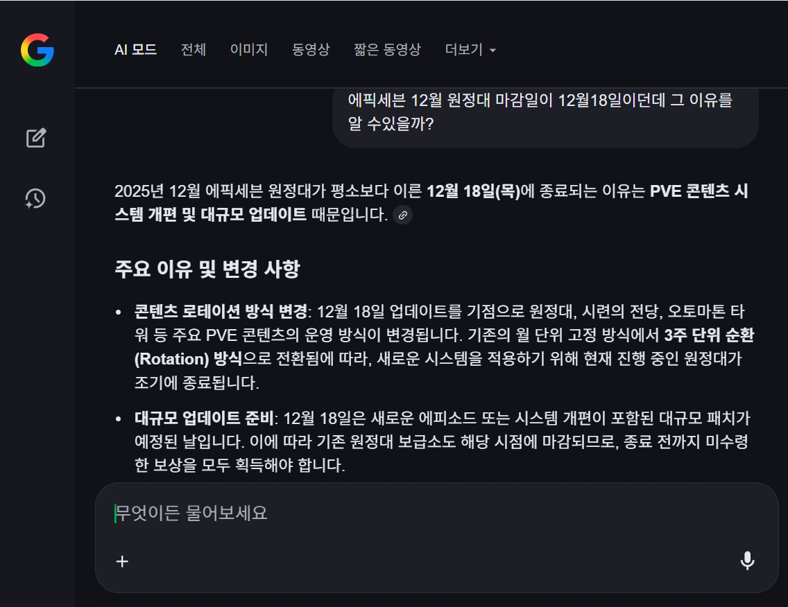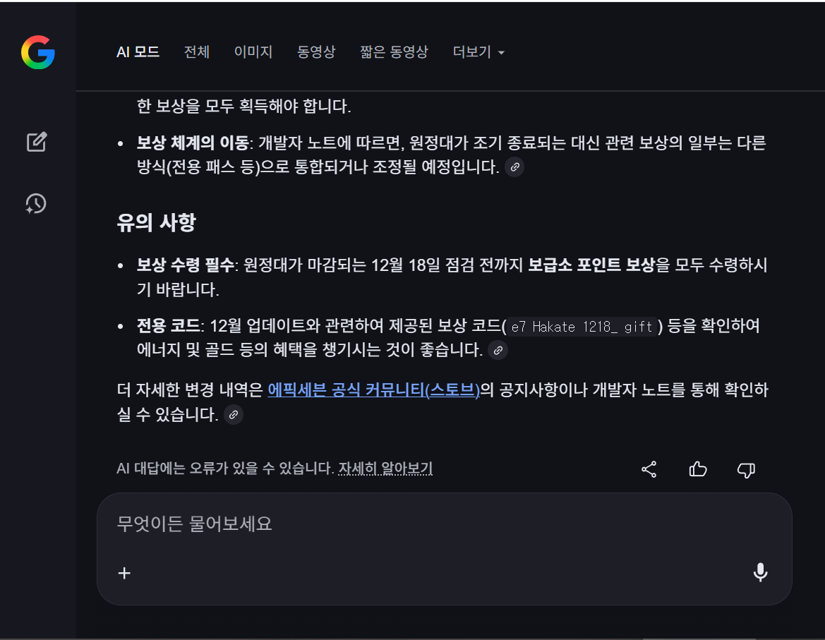 글상세자유 게시판 원정대 기간 [2] Rank 70 김노곤[STOVE79262333] 2025-12-17 08:14 2025-12-17 17:14 (+09:00) view count 187 MY홈 보기 작성글 보기 신고하기 공유하기 이번에 원정대 18일까지 인게 맞나요??? 31알까지 아닌가 ㅠㅠ 댓글 2 alarm 알림이 해제되었습니다. 최신순 최신순 등록순 추천순 댓글을 입력하려면 로그인 해주세요. 프리에타[No2357] 2025-12-17 14:23 2025-12-17 23:23 (+09:00) MY홈 보기 작성글 보기 신고하기 BEST 어느 용사님이 날짜만 살짝 수정해 줄지도 프리에타[No2357] 2025-12-17 14:23 2025-12-17 23:23 (+09:00) MY홈 보기 작성글 보기 신고하기 어느 용사님이 날짜만 살짝 수정해 줄지도 리코타엘마르[리코타엘마르] 2025-12-17 08:28 2025-12-17 17:28 (+09:00) MY홈 보기 작성글 보기 신고하기 AI에게 물어보니 저렇다하네요. 확인 취소 확인