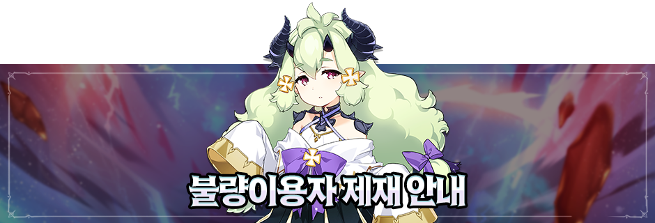 불법 프로그램 사용, 버그 악용 등 운영 정책에 위반된 행위를 한 불량 이용자에 대해 계정 제한을 진행합니다.