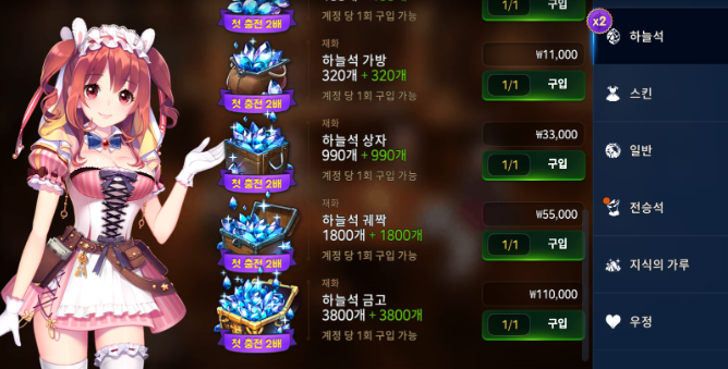 스타트 대시 패키지 상품 및 하늘석 첫 충전 2배! 이벤트 초기화 소식을 전해드립니다.