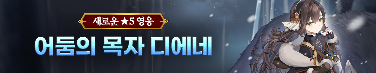 새로운 ★5 영웅 어둠의 목자 디에네는 성약 소환, 월광 소환, 신비 소환을 통해 만나실 수 있습니다.