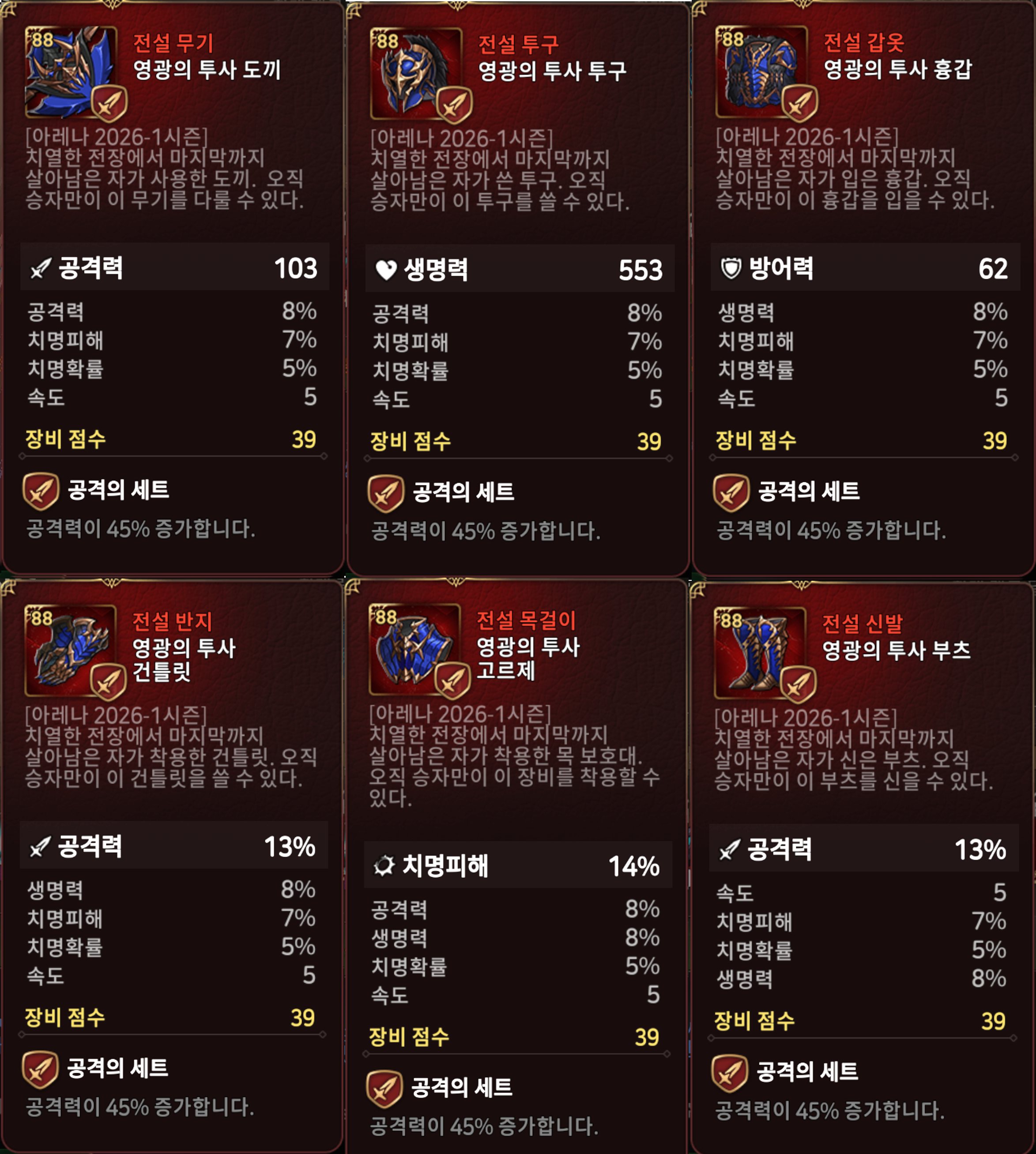 [ 아레나 2026-1 시즌 영광의 투사 장비 ]