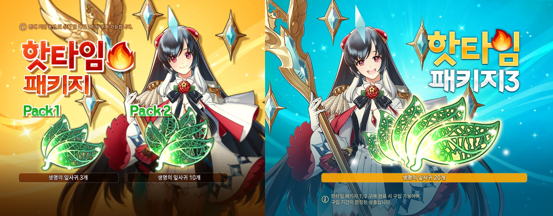 ▶ 핫타임 패키지 1, 2 상품은 버프 이벤트 진행 기간 동안 매일 1회씩 구매 가능합니다.