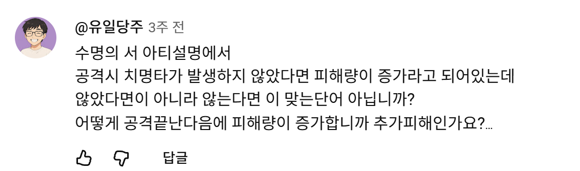 1. ★5 아티팩트 수명의 서의 피해량 증가 효과가 치명타 여부와 관계없이 적용되고 있지만 치명타 시에만 피해량이 증가되는 것으로 표현되는 현상