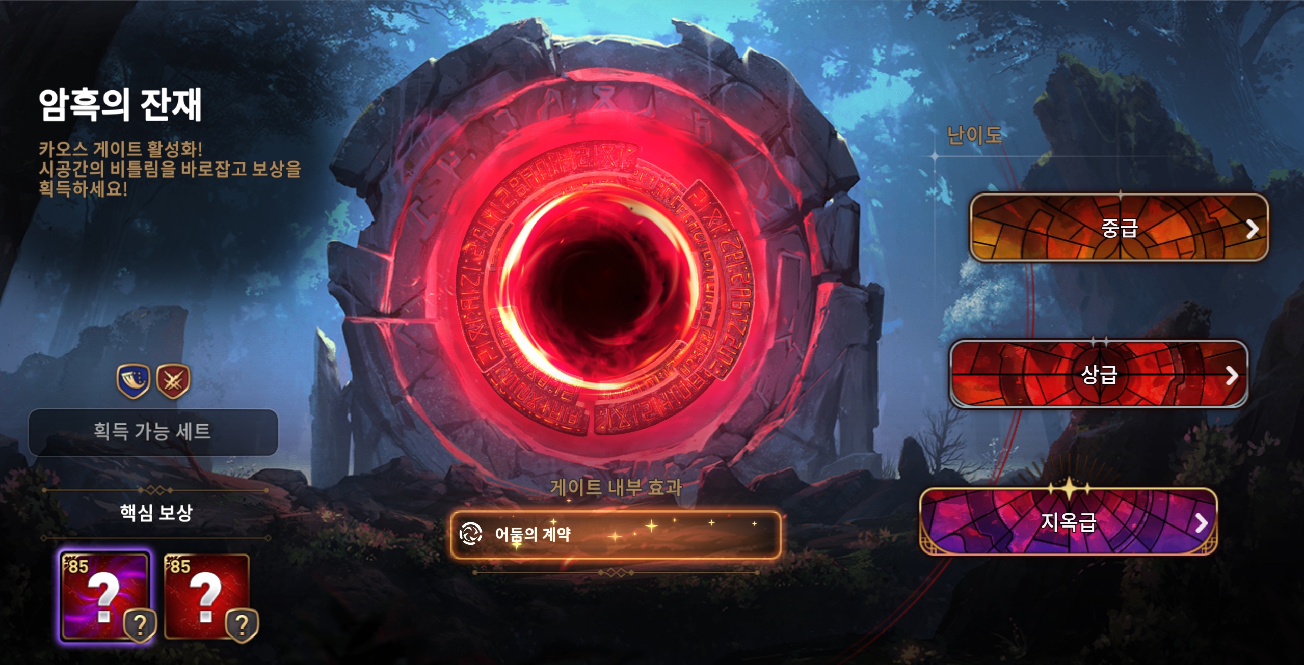- 이계의 틈은 중급/상급/지옥급 난이도로 구성되어 있습니다.