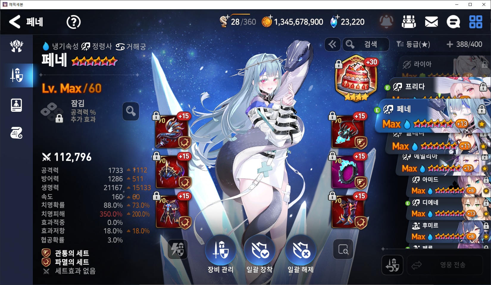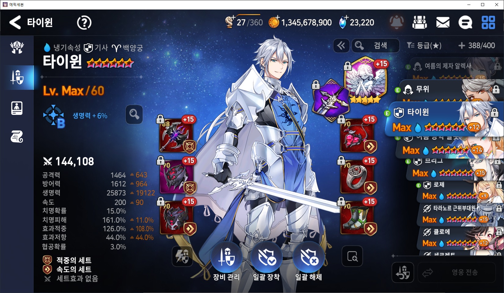 몽모랑시 스펙입니다. 행게가 그렇게 많이 안올라오는 느낌이 들어서 영약 같은 아티로 바꾸어도 좋을 것 같네요.