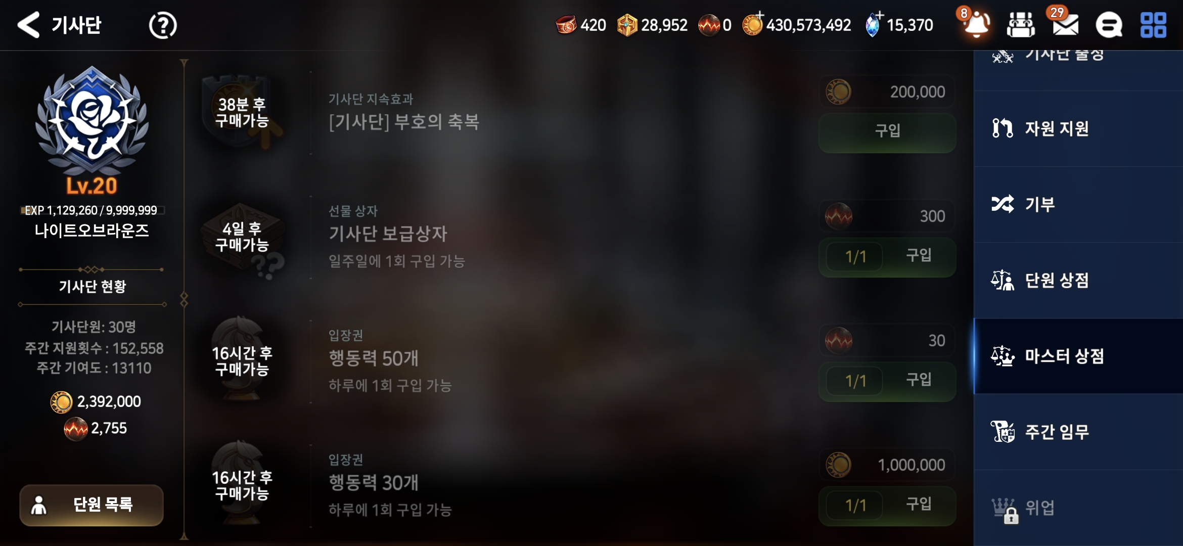 기사단 골드 기부 금액 상한을 늘려주실 수 있을까요? [2]