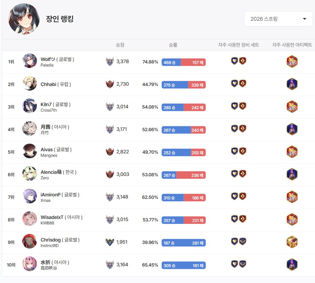 현 시즌 장인랭킹에 절반 이상이 현재 레전드 티어 인것을 보면