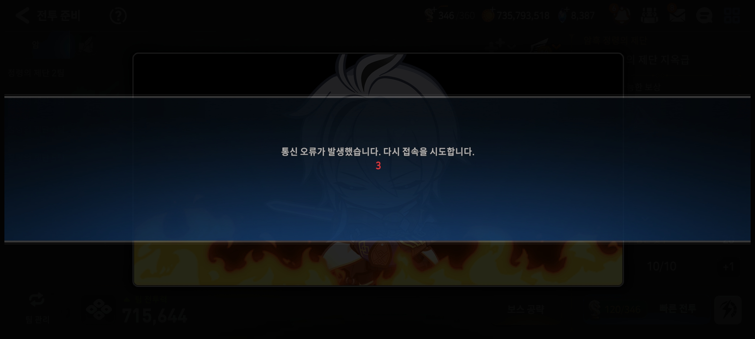 글상세버그 제보 빠른전투 시 통신 오류 발생 Rank 70 송탁이[SongTake] 2026-02-07 17:01 2026-02-08 02:01 (+09:00) view count 77 MY홈 보기 작성글 보기 신고하기 공유하기 정령의 제단 빠른 전투였고2번 재접속 시도하더니 실패하고 아예 연결이 끊어집니다.+ 영웅 정보 화면에서 통신 오류 발생+ 아레나 방덱 설정 화면에서 통신 오류 발생서버상태가 불안정해보입니다.+2/10 00:13 같은 증상 재발생 댓글 0 alarm 알림이 해제되었습니다. 최신순 최신순 등록순 추천순 댓글을 입력하려면 로그인 해주세요. 확인 취소 확인