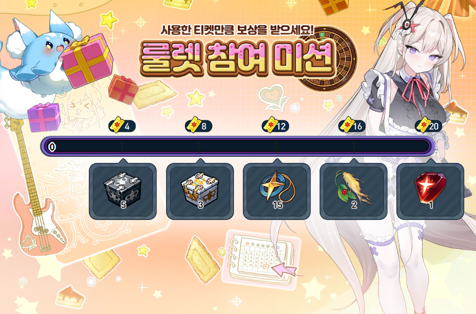 일일 미션으로 획득한 티켓으로 룰렛을 돌려 다양한 선물을 받아가세요!