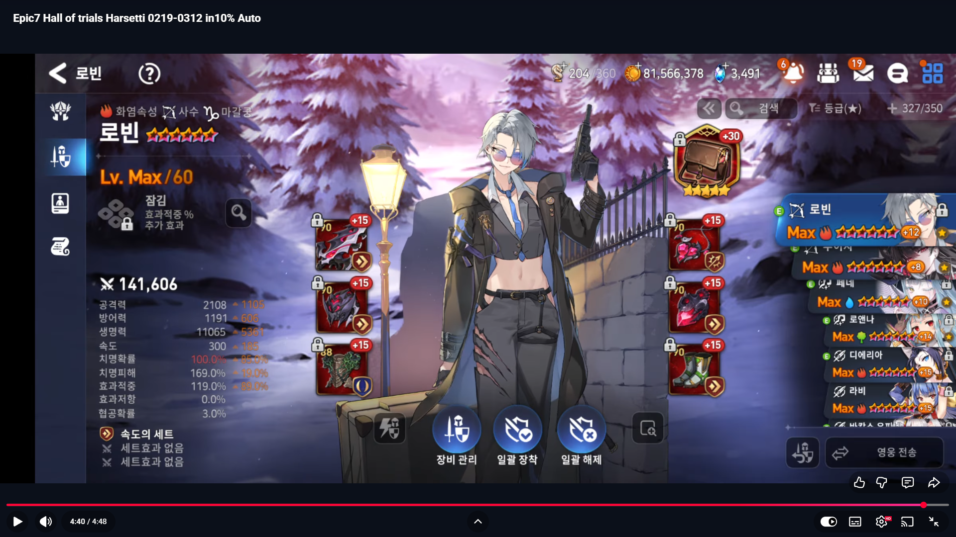 2) 같은 덱으로 손컨하면 in5% 가능합니다. 페네 스택&하르세티 디버프 갯수 관리가 중요