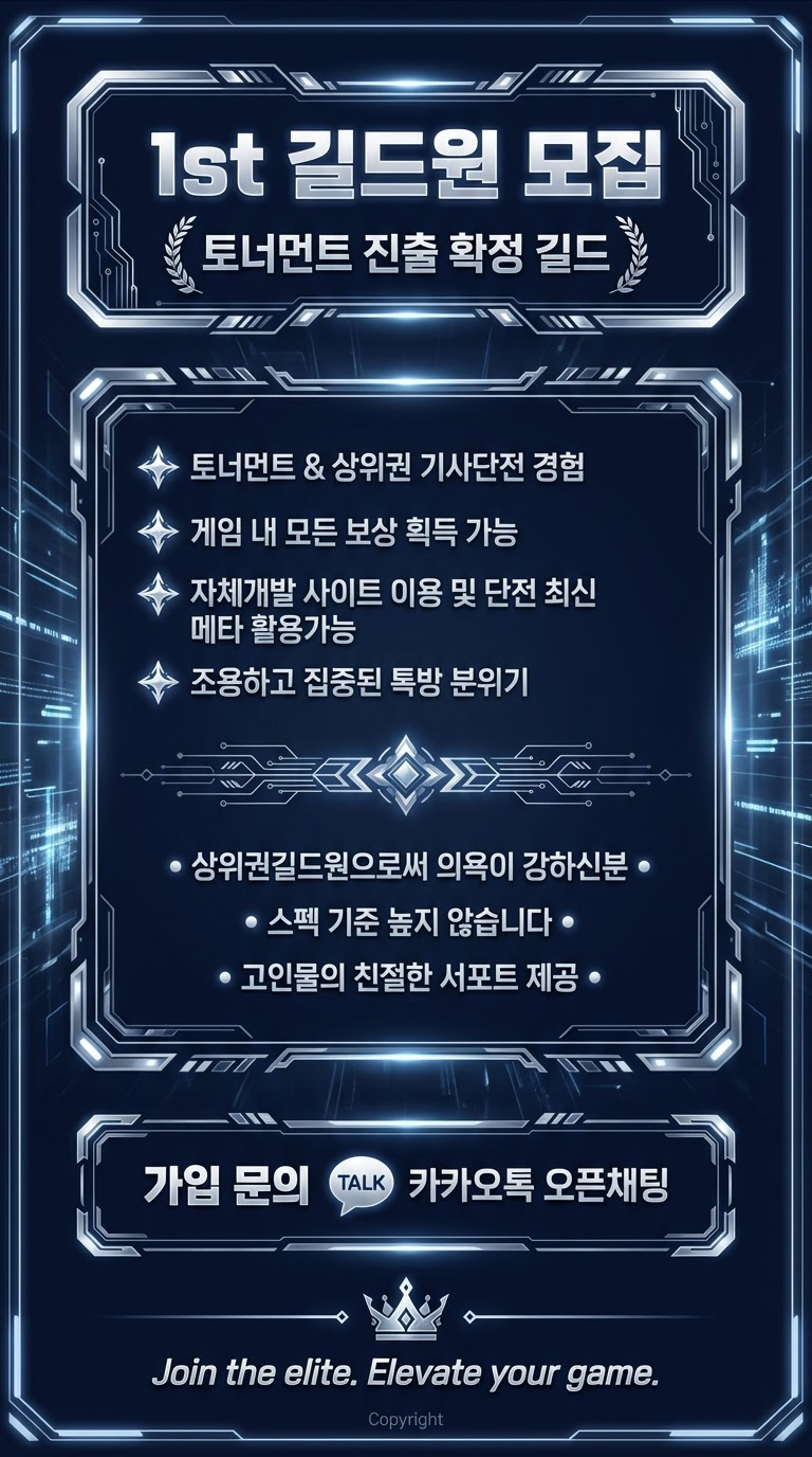 *기사단레전드 마감 및 토너진출을 목표로 하며, 고대의 유산 히든 보스 올클리어를 꾸준히 달성하고 있습니다.