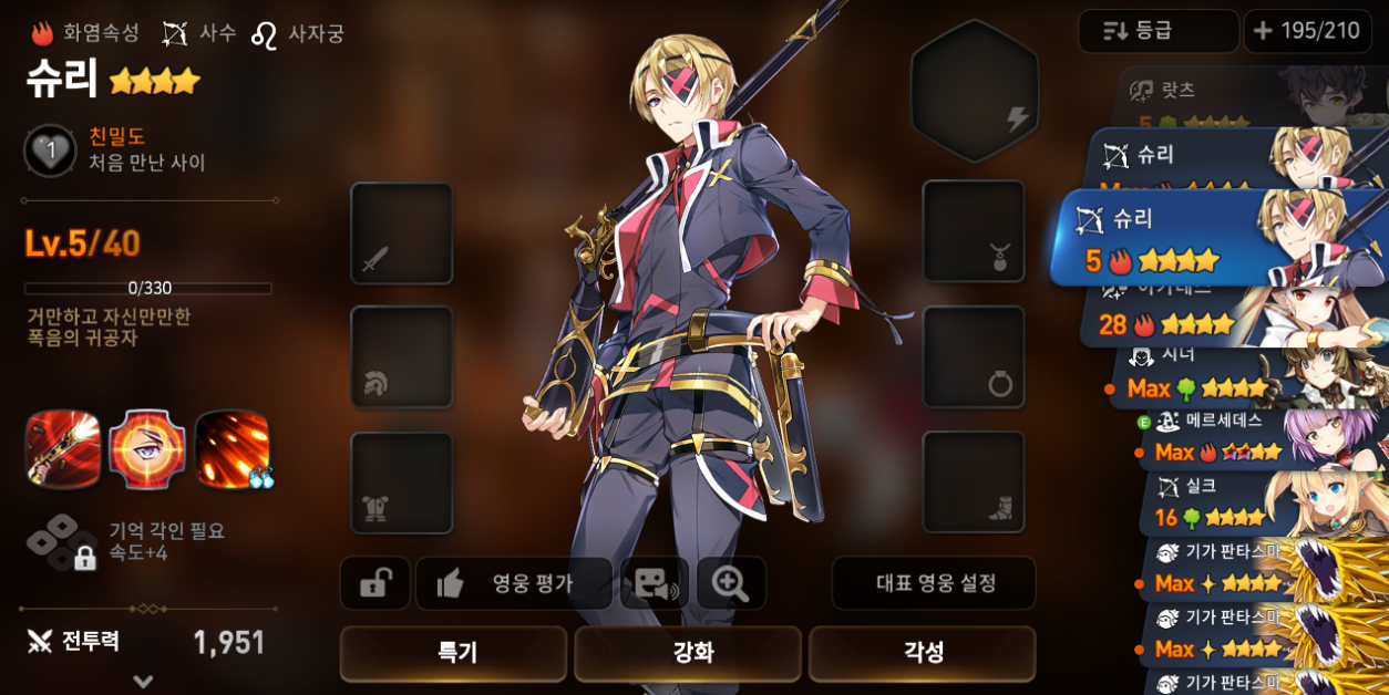 슈리는 4성급이 아니라 5성급이라 생각합니다