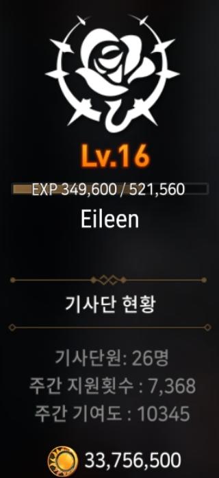 ■글로벌■ L.v16 Eileen 에서 기사단원구해요~