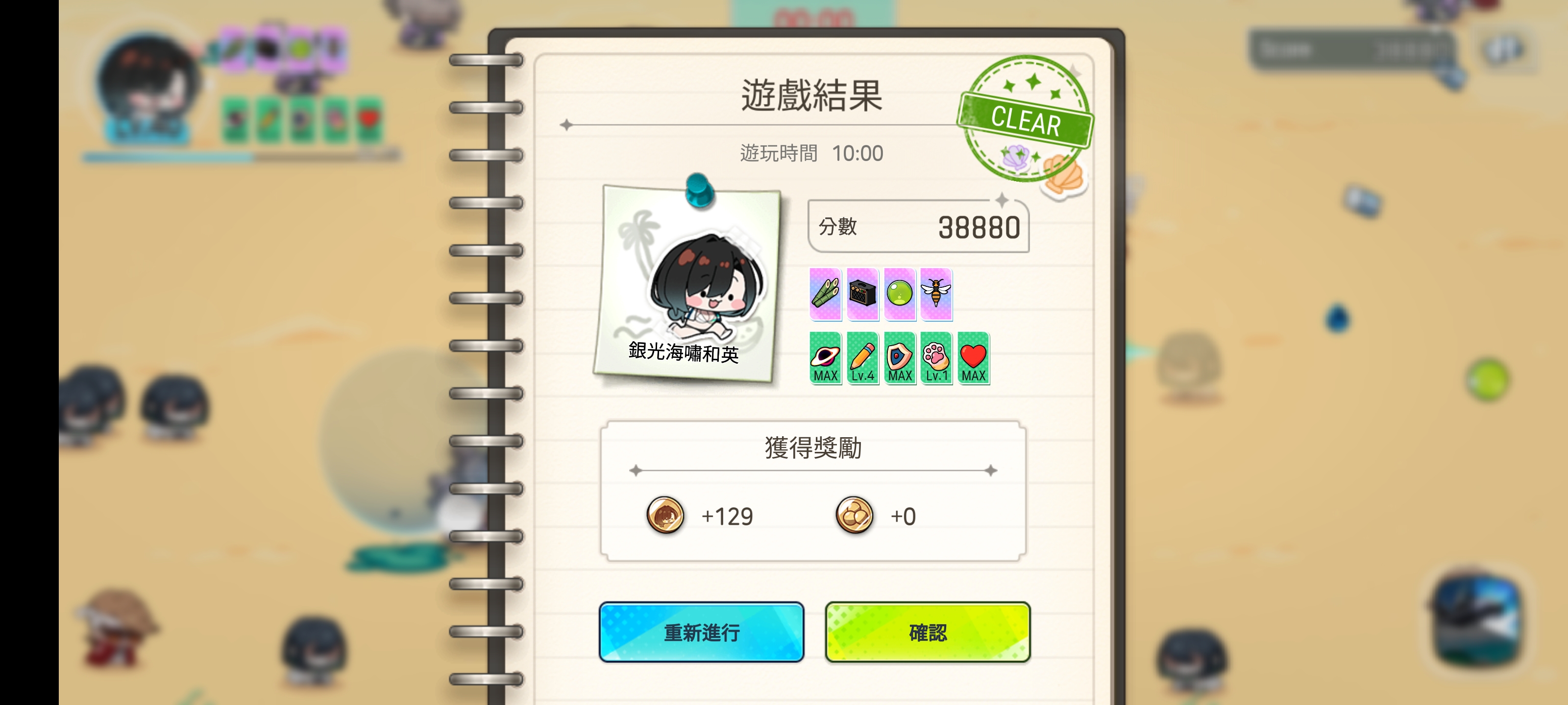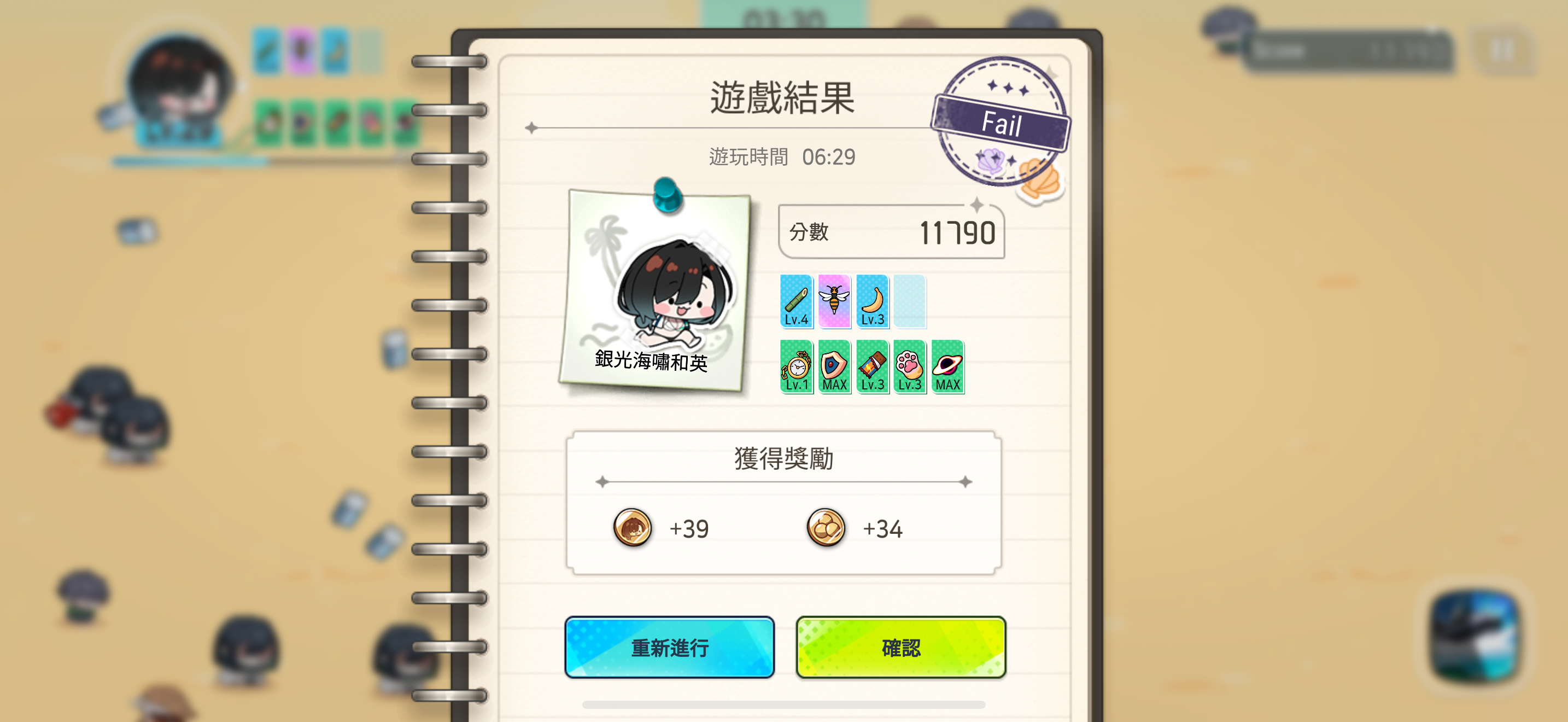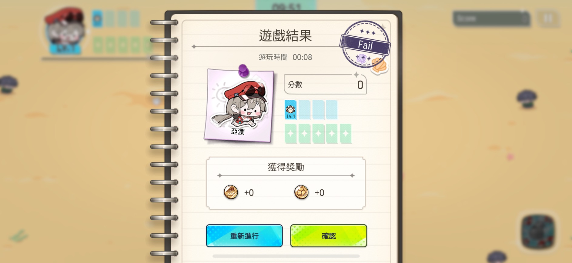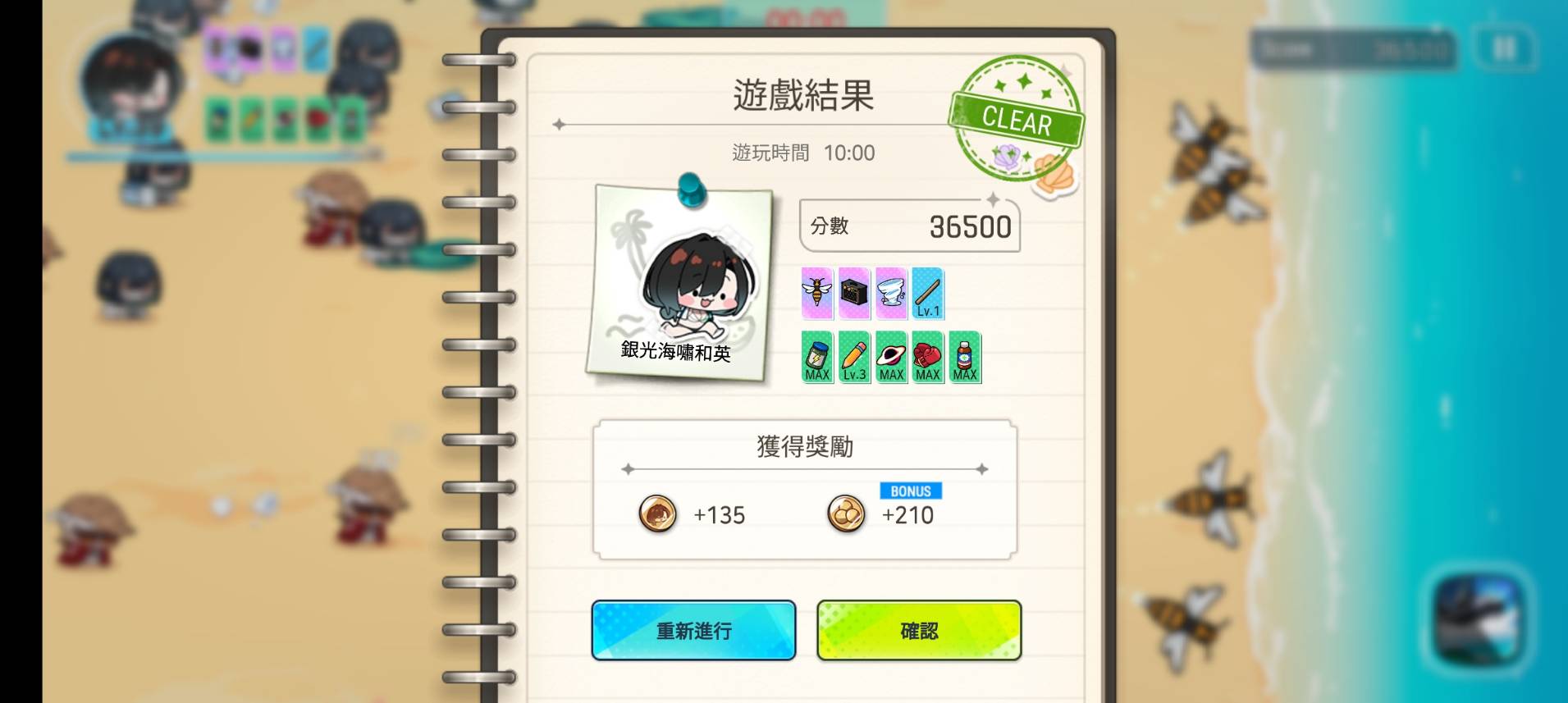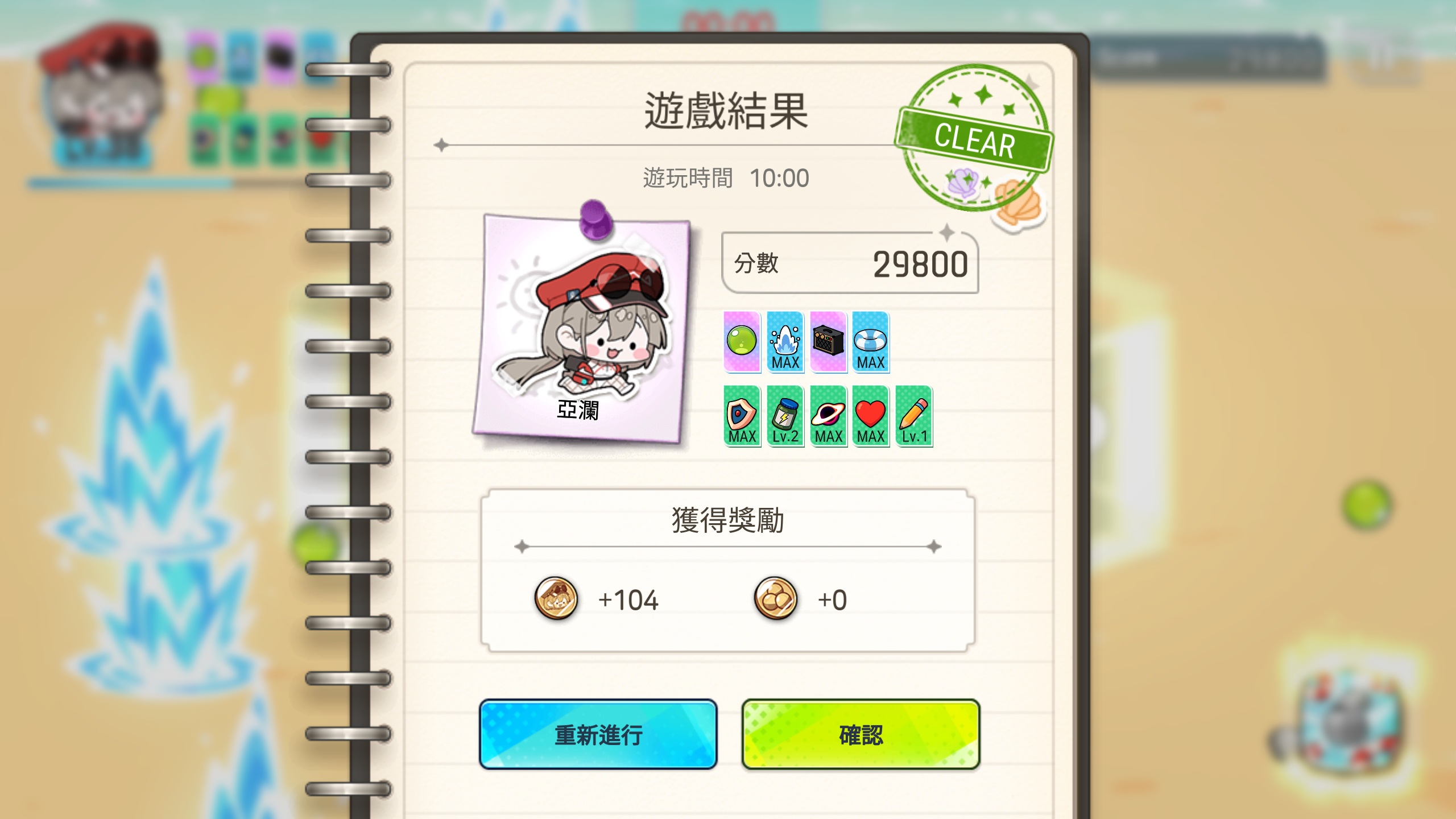 ① 遊玩小遊戲【暑期集訓大作戰】後,將結果畫面截圖。