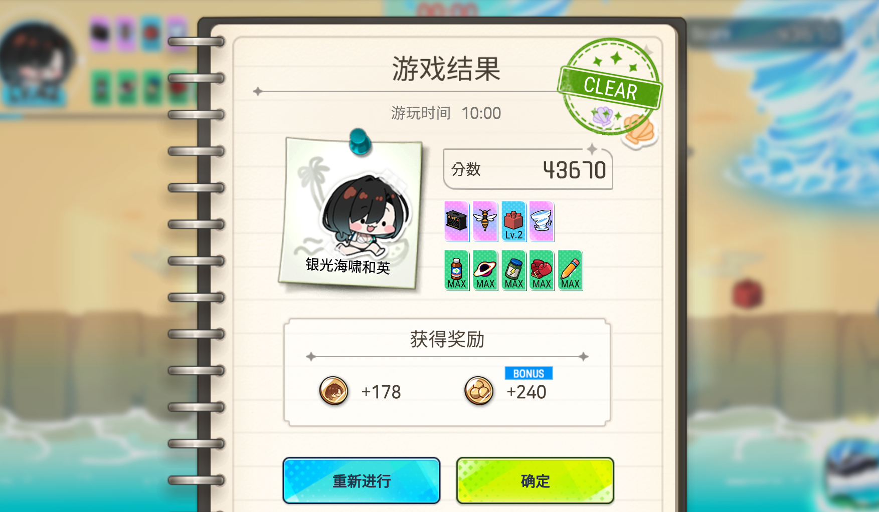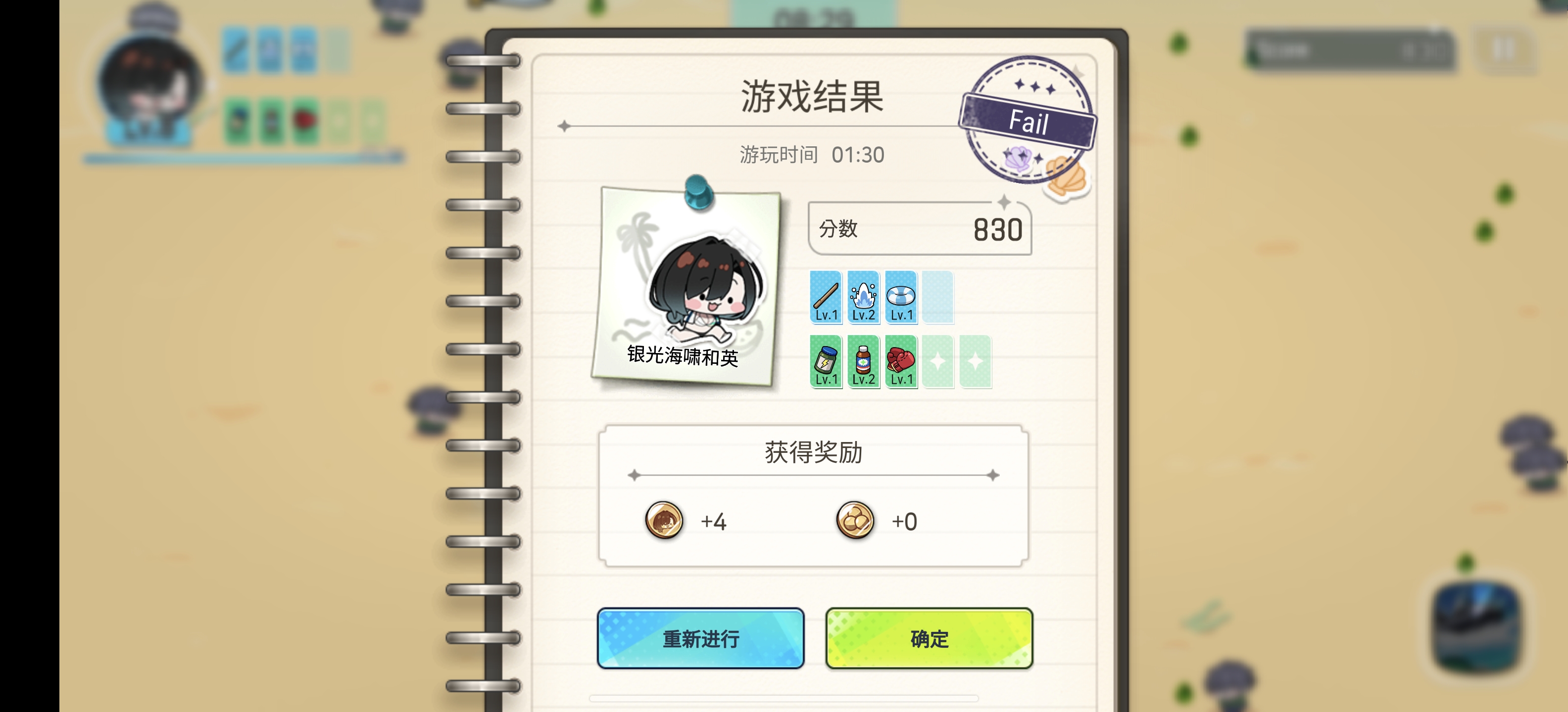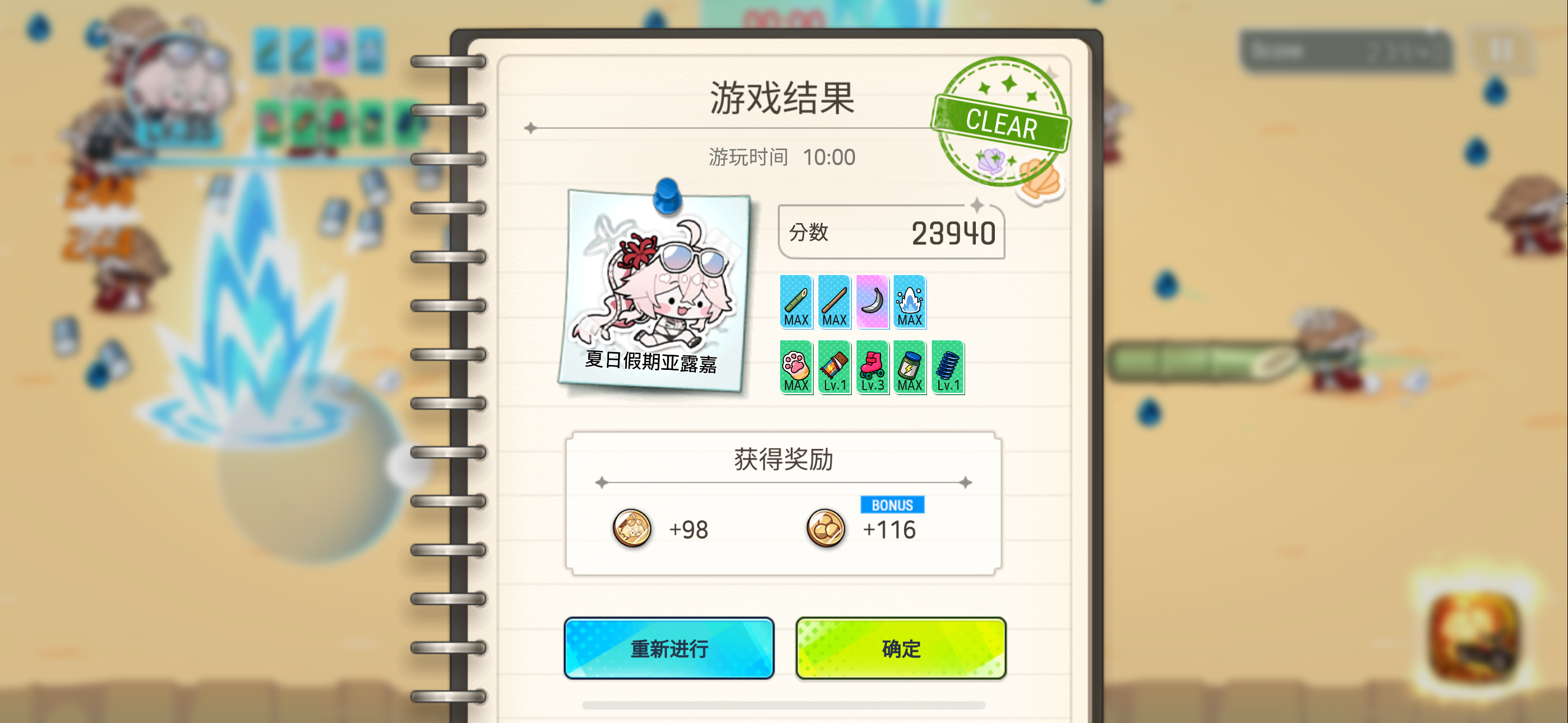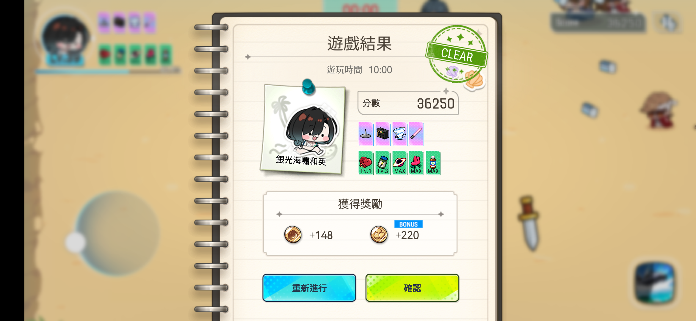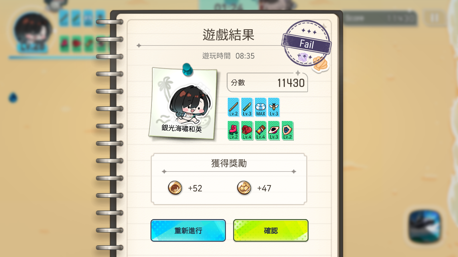 ① 遊玩小遊戲【暑期集訓大作戰】後,將結果畫面截圖。