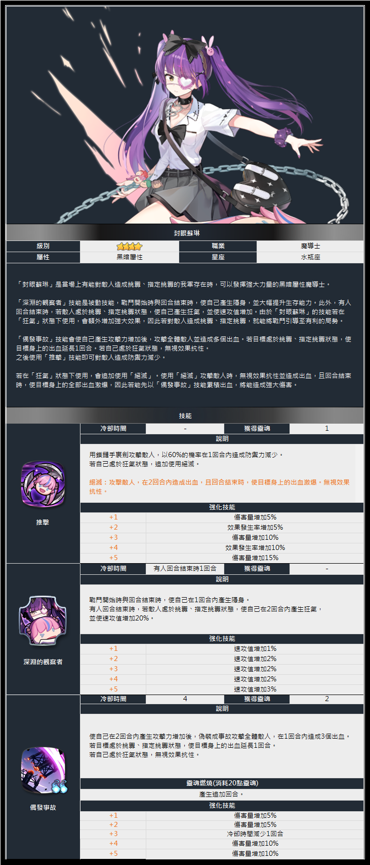 全新4★英雄封眼蘇琳,將可透過聖約召喚、月光召喚、神祕召喚與她相遇。