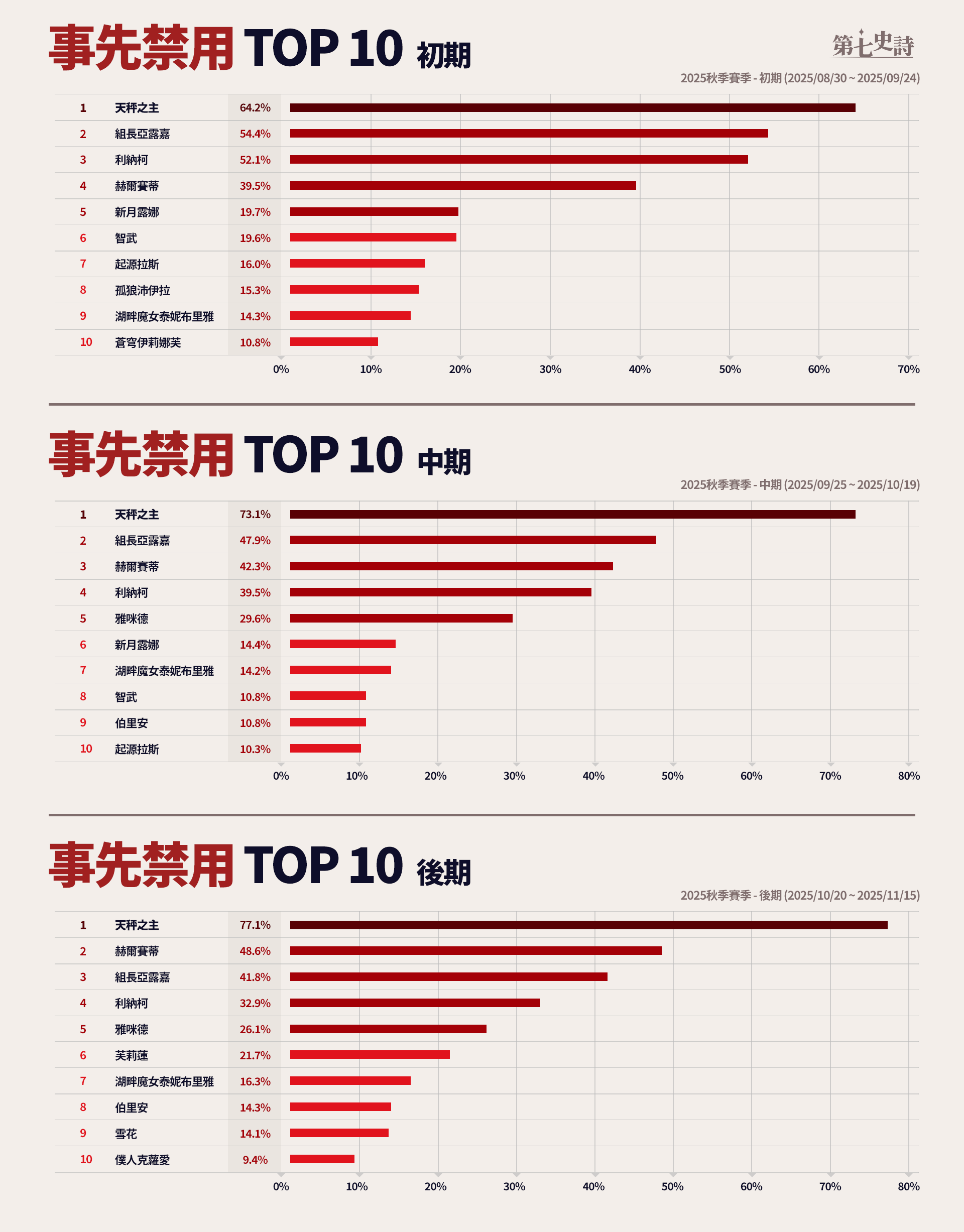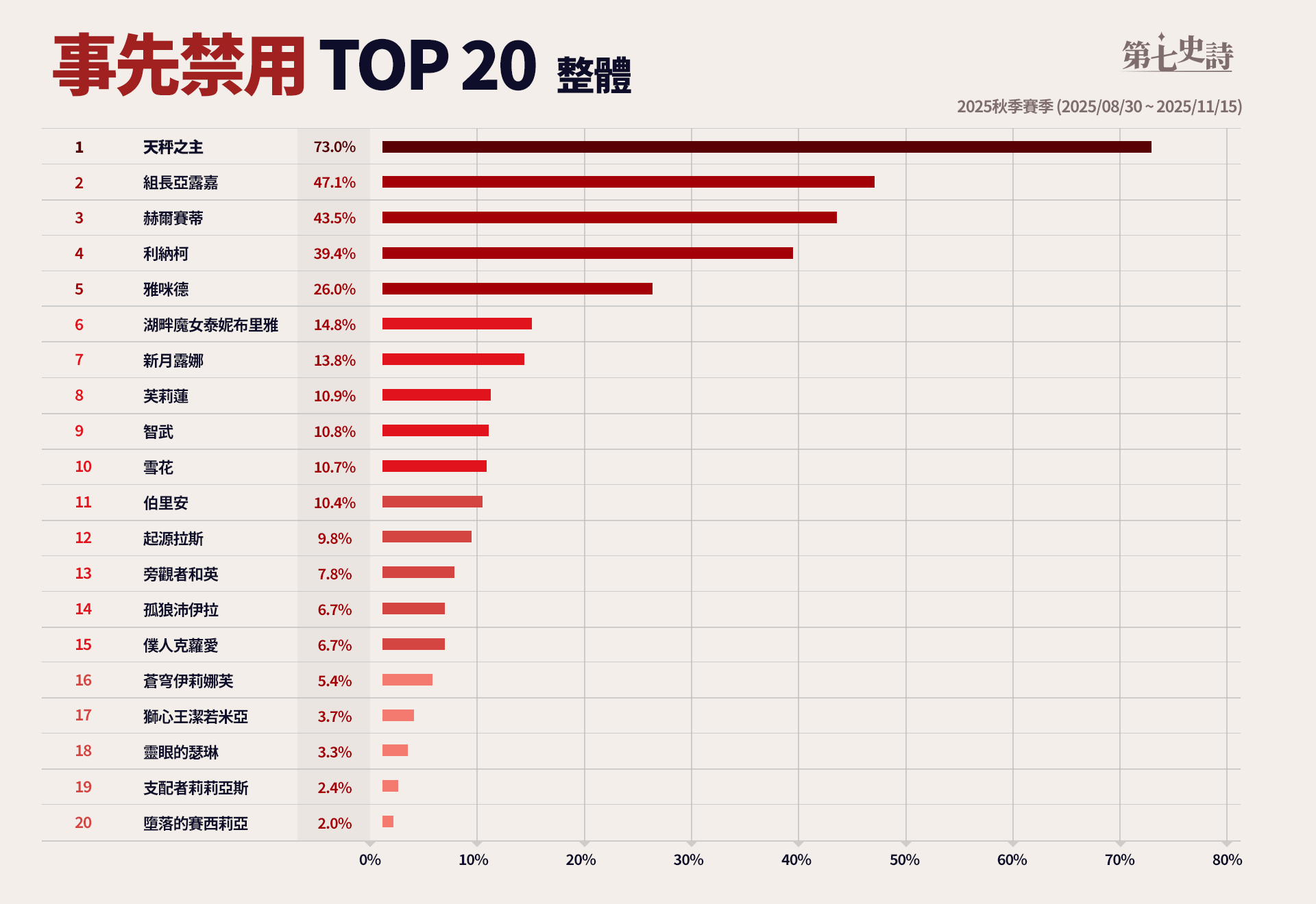 ※ 以優勝者、戰神、王者、傳說以上聯盟進行的比賽作為基準,將可確認近期內各賽季的事先禁用數據。