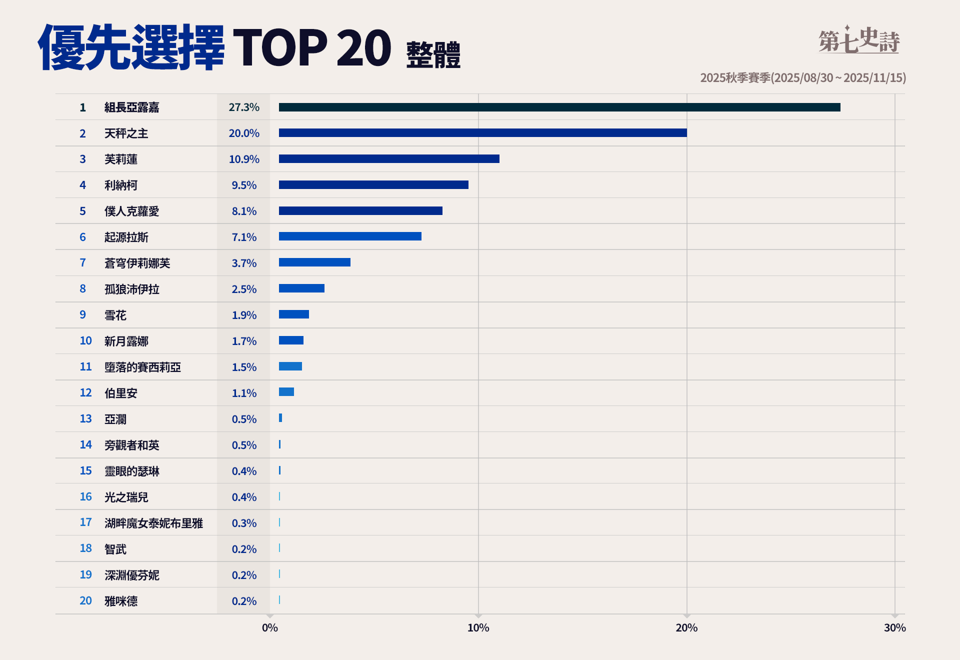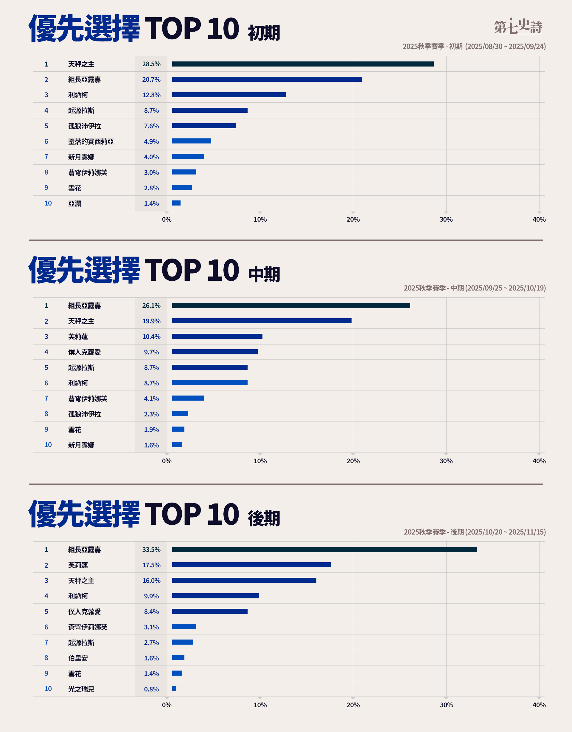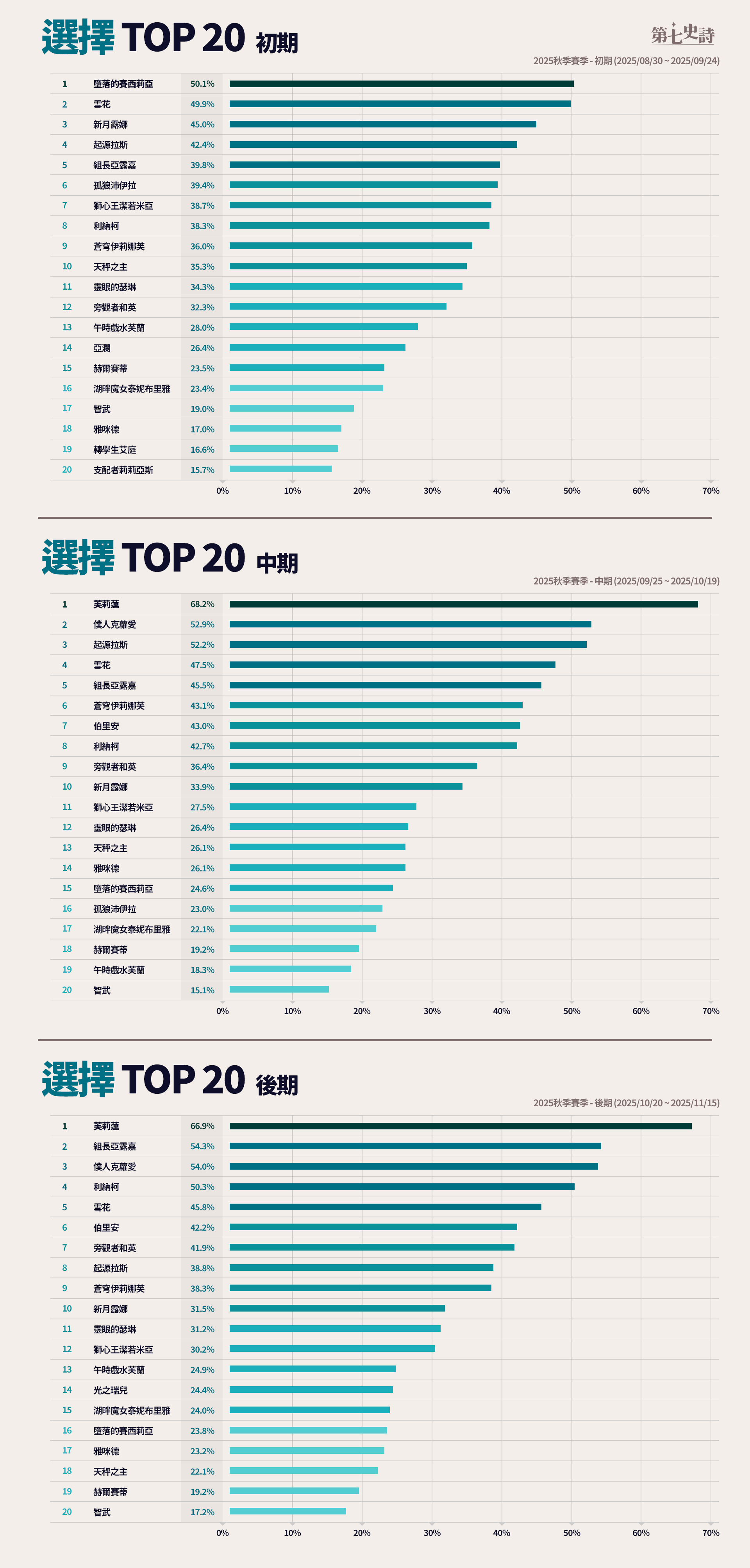 【2025秋季賽季優先選擇/稍後選擇勝率統計】