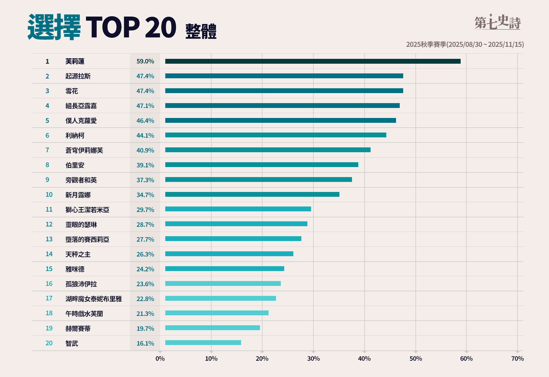 靈眼的瑟琳 | 2.0% | 玫拉妮 | 1.0% |