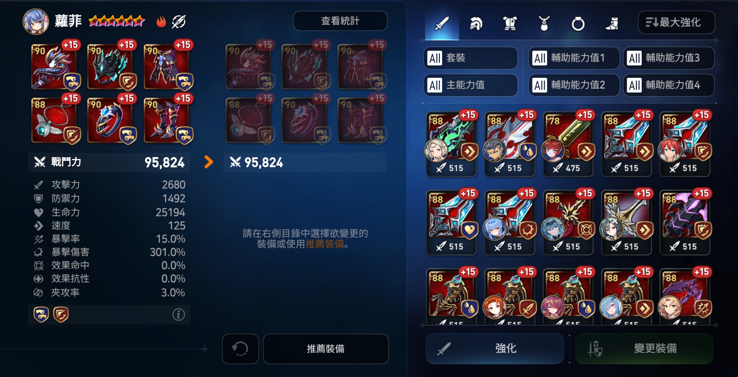 - 新增【推薦配戴裝備】功能,可為目前未配戴的+15強化裝備推薦適合配戴的英雄。