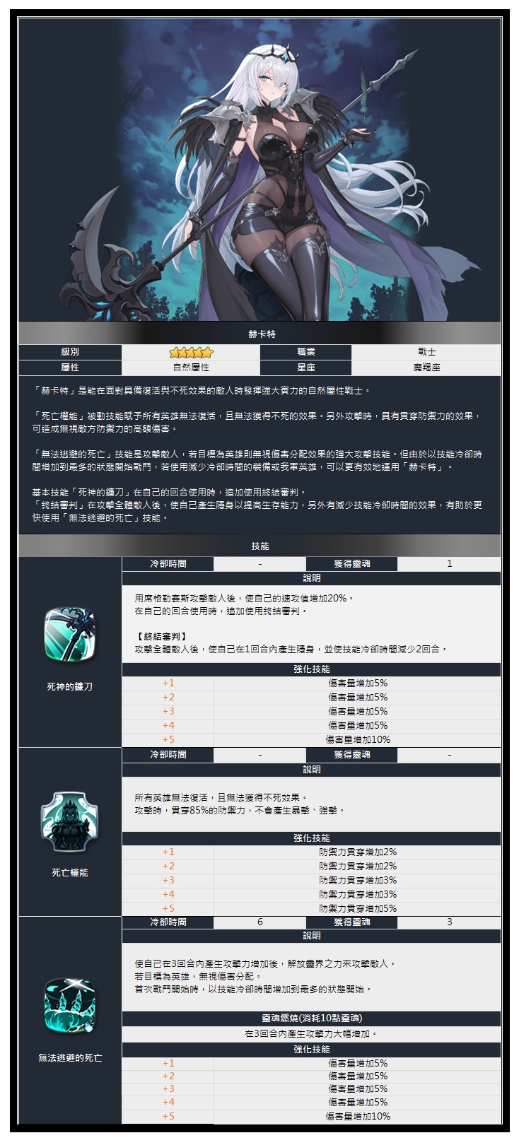 能在面對具備復活與不死效果的敵人時發揮強大實力的自然屬性戰士-「赫卡特」,以及在攻擊時,若未發生暴擊將增加傷害量,並根據自己的攻擊力對目標造成等比追加傷害的戰士神器-「壽命之書」!請試著在召喚機率UP!中遇見他們吧!