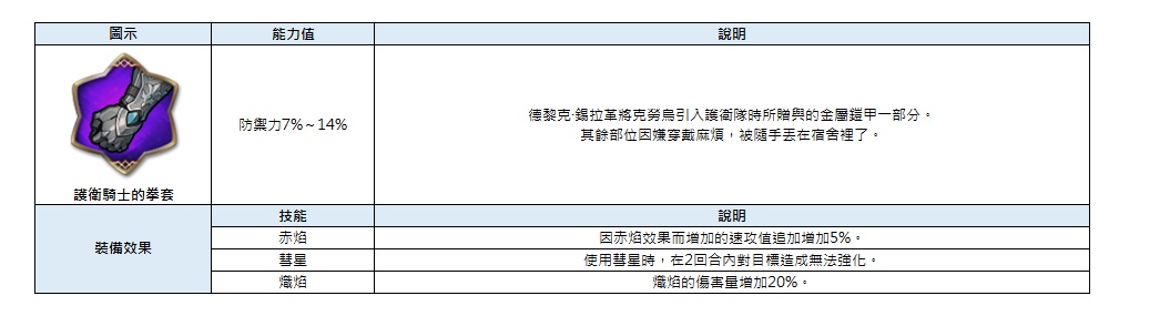 護衛隊長克勞烏 | 新增專屬裝備 變更能力值 |