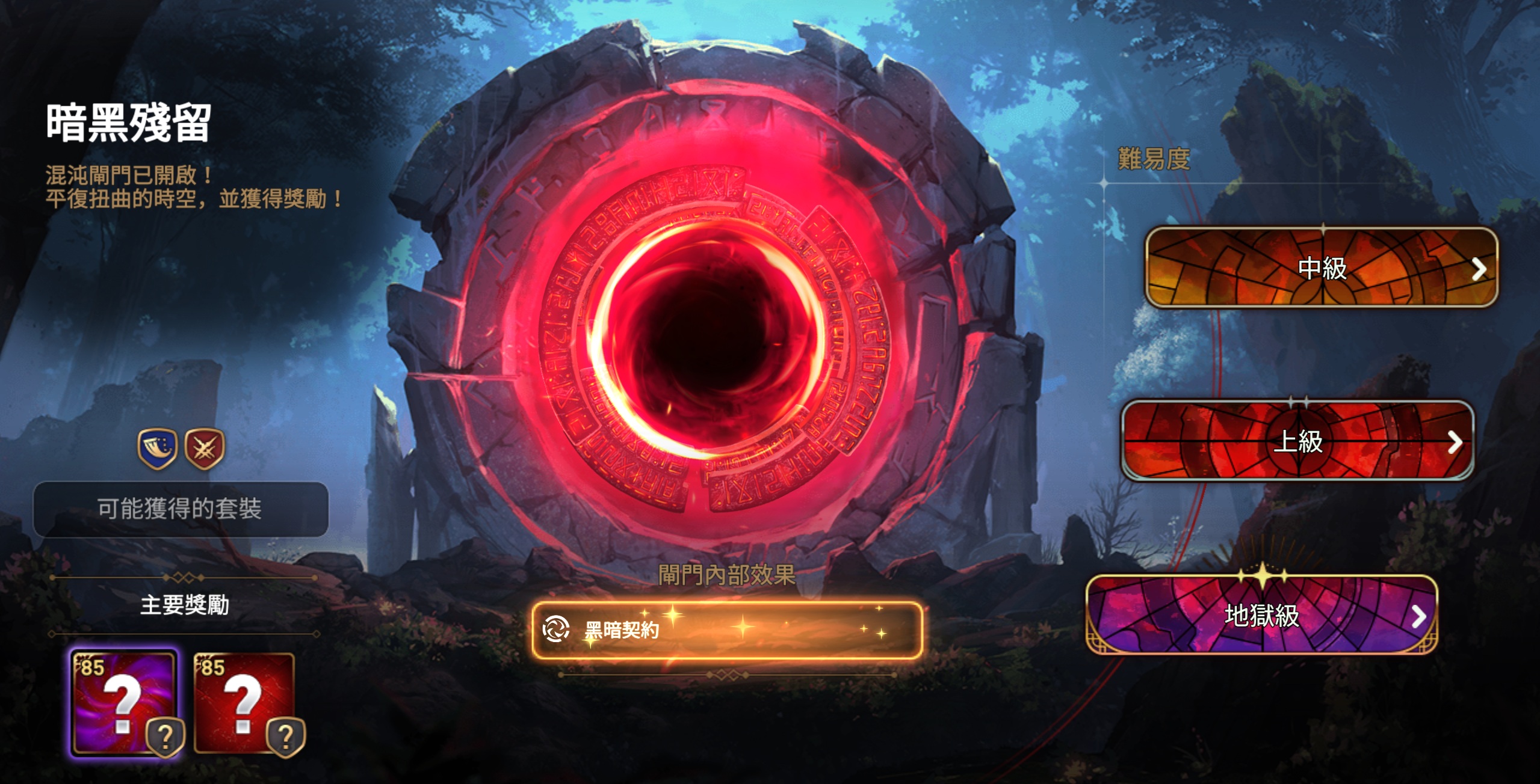 - 異界之隙分為中級、上級、地獄級三種難度。