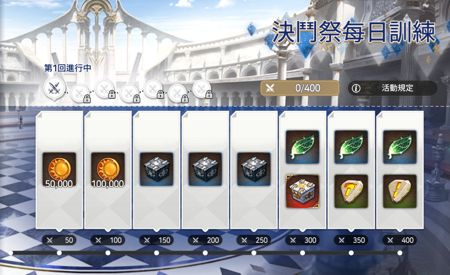 - 【決鬥祭每日訓練】與【鬥士交易所】的點數獲得條件有所不同。遊玩時敬請參考。