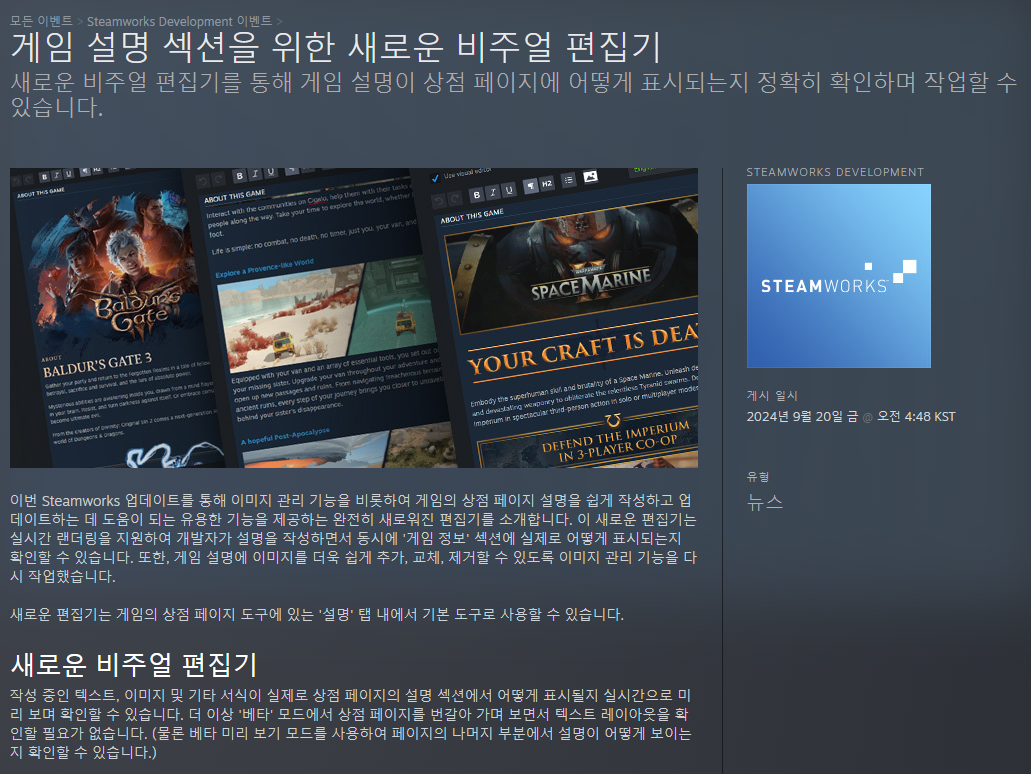 😶🌫️ [금주의 스팀 요약] 멋진 게임 페이지를 위한 비주얼 편집기 업데이트