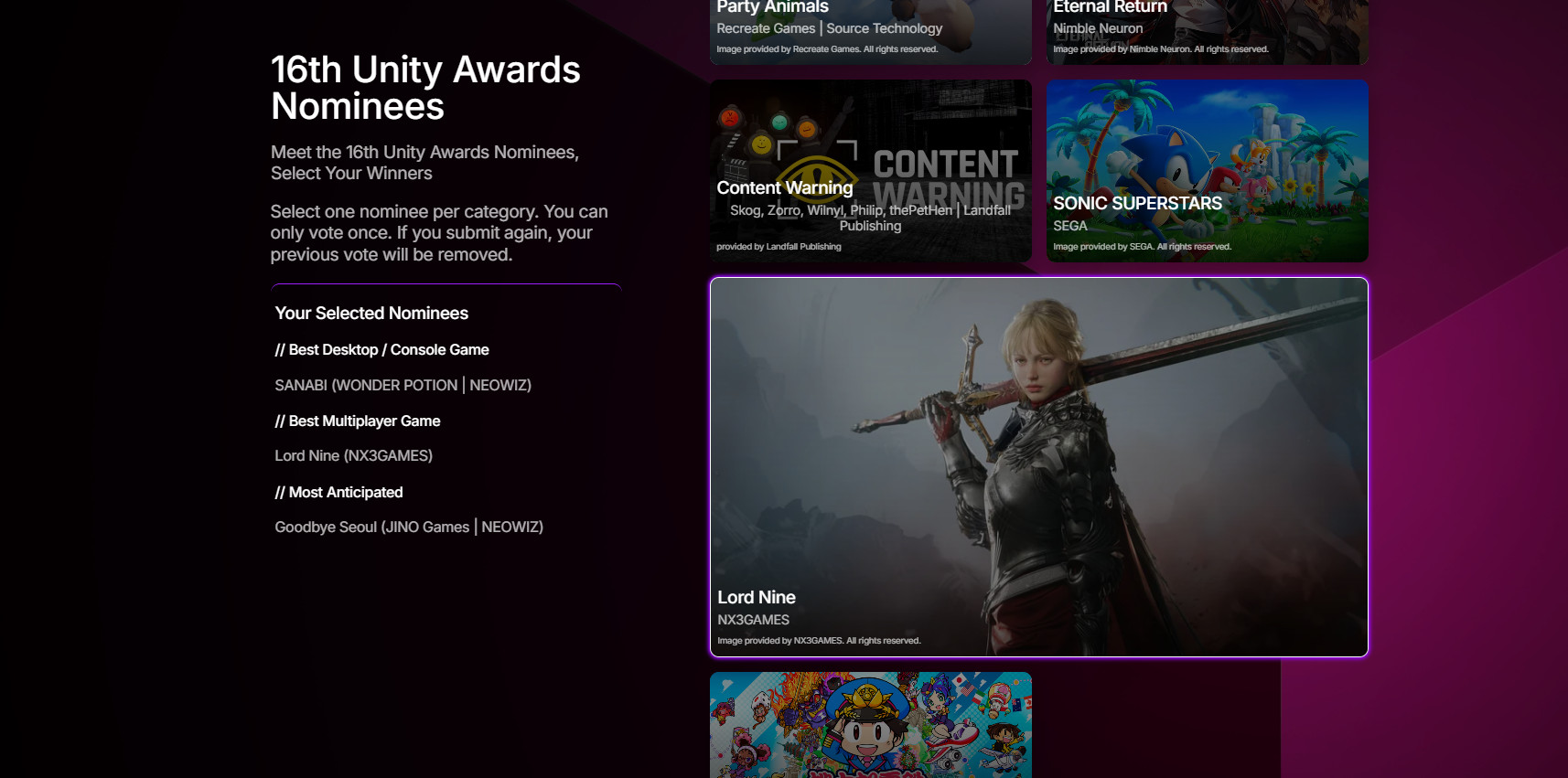 글상세🎮 Game Story 제16회 Unity Awards 게임 투표 가능 [4] hashiruka48 21/09/2024 10:32 AM 21/09/2024 07:32 PM (+09:00) view count 91 View MY HOME View Posts Report Share 제16회 Unity Awards 게임 투표 가능https://create.unity.com/unity-awards-games Reply 4 alarm Notification has been disabled. Newest Newest By registration By recommendation To enter a comment Log In Please Sojeob 21/09/2024 01:54 PM 21/09/2024 10:54 PM (+09:00) View MY HOME View Posts Report Report Chim 21/09/2024 10:38 AM 21/09/2024 07:38 PM (+09:00) View MY HOME View Posts Report hashiruka48 Written by 21/09/2024 10:50 AM 21/09/2024 07:50 PM (+09:00) View MY HOME View Posts Report Confirm Cancel Confirm