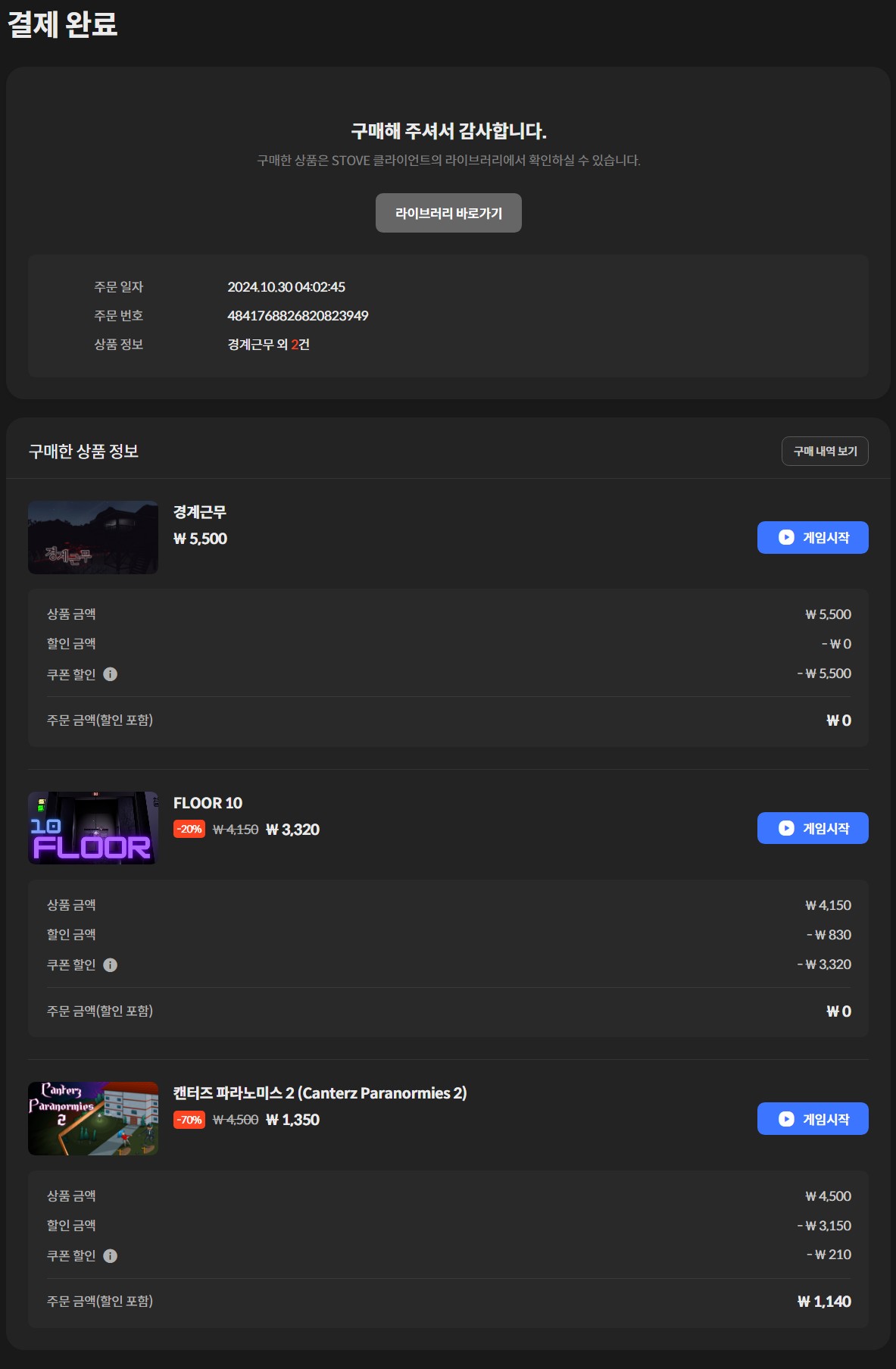 โ A. ๊ฒ์์ ๋๊น์ง ํด๋ฆฌ์ด ๊ฐ ์๋, '๊ฒ์ ๊ตฌ๋งค' ๋ฅผ ๋ปํ๋ ๊ฒ์ผ๋ก, ๊ตฌ๋งค ํ ์์ ๋กญ๊ฒ ํ๋ ์ด ํด์ฃผ์๋ฉด ๋ฉ๋๋ค