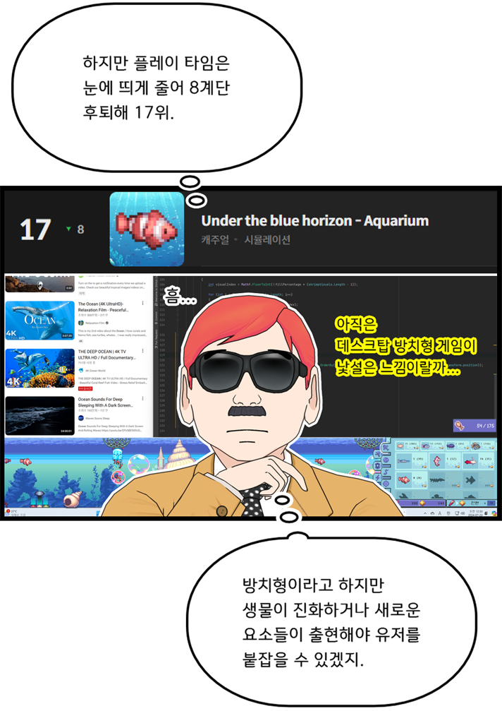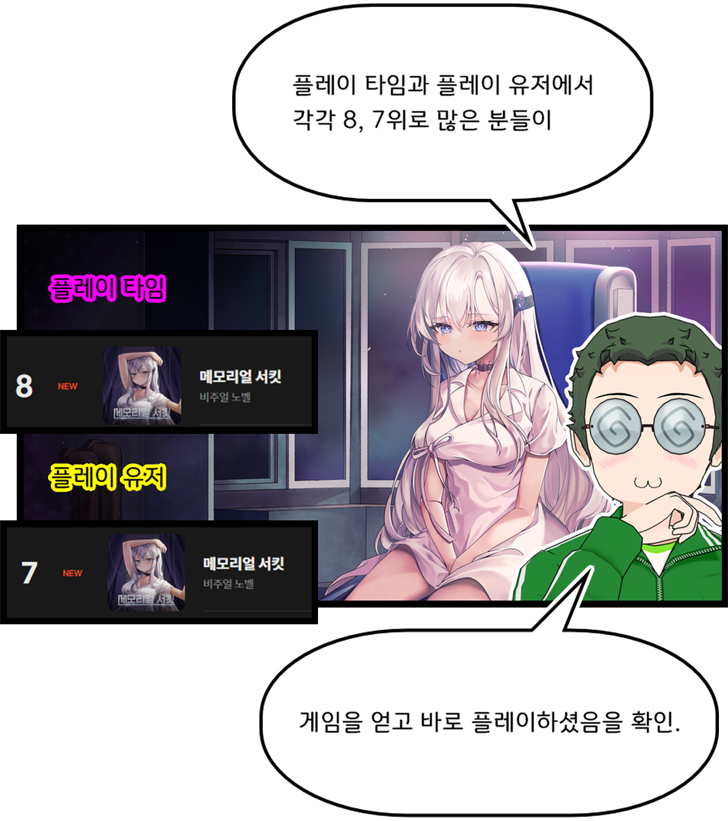 글상세🎮 Game Story 스토브 게임 순위 툰 65) 절절한 SF 연애담 '메모리얼 서킷' & 매콤한 버튜버 생존기 '버튜버 파라노이아' 슈퍼 빅딜 5로 재부상! [9] 고요한바위 27/05/2025 02:57 PM 27/05/2025 11:57 PM (+09:00) view count 369 View MY HOME View Posts Report Share #메모리얼서킷 #SF비쥬얼노벨 #블랙아카데미 #텐가이 #도약 #버튜버파라노이아 #유진게임즈#기가배시 #언더더블루호라이즌아쿠아리움 #메카쥬라스 #데스크탑아기동물목장 #벼이삭마을이야기#백의소각자 #폭풍의메이드 #서큐하트콜라보dlc #두근두근유니버스 #써니카페 #플레이엑스포 #스토브게임순위툰 Reply 9 alarm Notification has been disabled. Newest Newest By registration By recommendation To enter a comment Log In Please TabomGame 29/05/2025 05:06 PM 30/05/2025 02:06 AM (+09:00) View MY HOME View Posts Report 위스키캣 29/05/2025 09:00 AM 29/05/2025 06:00 PM (+09:00) View MY HOME View Posts Report 촉촉한감자칩 28/05/2025 11:59 AM 28/05/2025 08:59 PM (+09:00) View MY HOME View Posts Report 버튜버 파라노이아가 해피 엔딩이 있었나?분명 플레이했는데, 왜 행복해지는 세계선이 떠오르질 않는거죠? ㅋㅋㅋㅋㅋㅋㅋㅋㅋㅋㅋㅋ진엔딩은 분명 있었던 것 같은데... 다른 배드 엔딩들의 인상이 너무 강렬했던 것 같네요!데탑 방치형은 한 2개정도 건드려 봤는데, 방치형을 좋아하는데도 저한테는 잘 안맞더라고요.어차피 방치형이라 켜놓고 딴거하거나,아니면 한동안 계속 조작하는 이지선다인데,계속 화면을 가리고 있어서, 작업에도 방해가 되더라고요 ㅠㅠ엑스포 진행하시느라 고생하셨습니다!이번주도 잘 보고 갑니다! Devfcat 28/05/2025 05:59 AM 28/05/2025 02:59 PM (+09:00) View MY HOME View Posts Report 덤비면문다고 28/05/2025 04:55 AM 28/05/2025 01:55 PM (+09:00) View MY HOME View Posts Report Chim 28/05/2025 03:50 AM 28/05/2025 12:50 PM (+09:00) View MY HOME View Posts Report LrLi 28/05/2025 01:57 AM 28/05/2025 10:57 AM (+09:00) View MY HOME View Posts Report 리즈의리즈시절 28/05/2025 01:48 AM 28/05/2025 10:48 AM (+09:00) View MY HOME View Posts Report 한라미 28/05/2025 01:31 AM 28/05/2025 10:31 AM (+09:00) View MY HOME View Posts Report Confirm Cancel Confirm