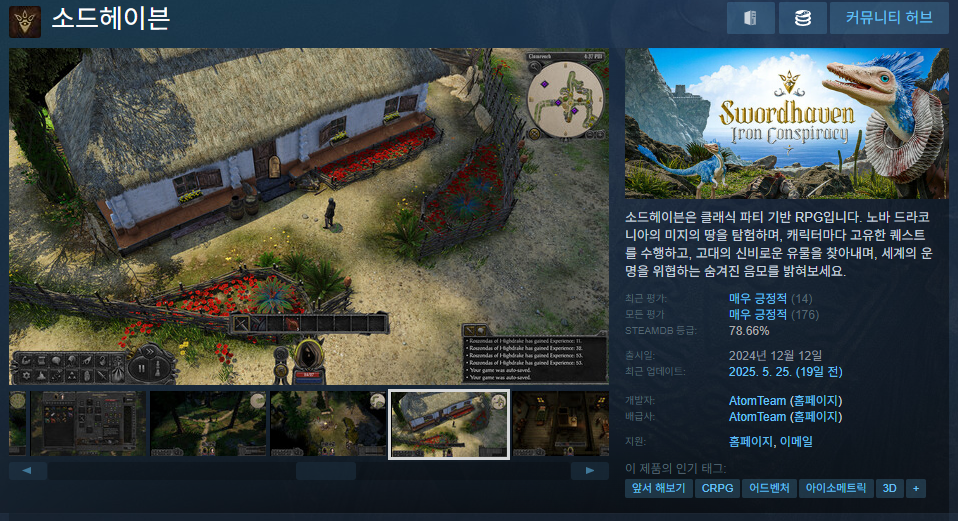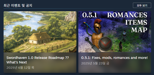 소드헤이븐은 유저 한글패치(ai 번역?)가 나왔었는데 이후에 공식 한글을 지원하고 있습니다.