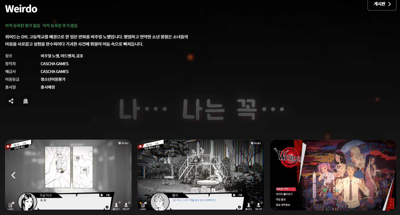 저는 연애물보다는 이런 스릴 있는 비쥬얼 노벨 좋아해서 출시 소식이 기쁘네요.
