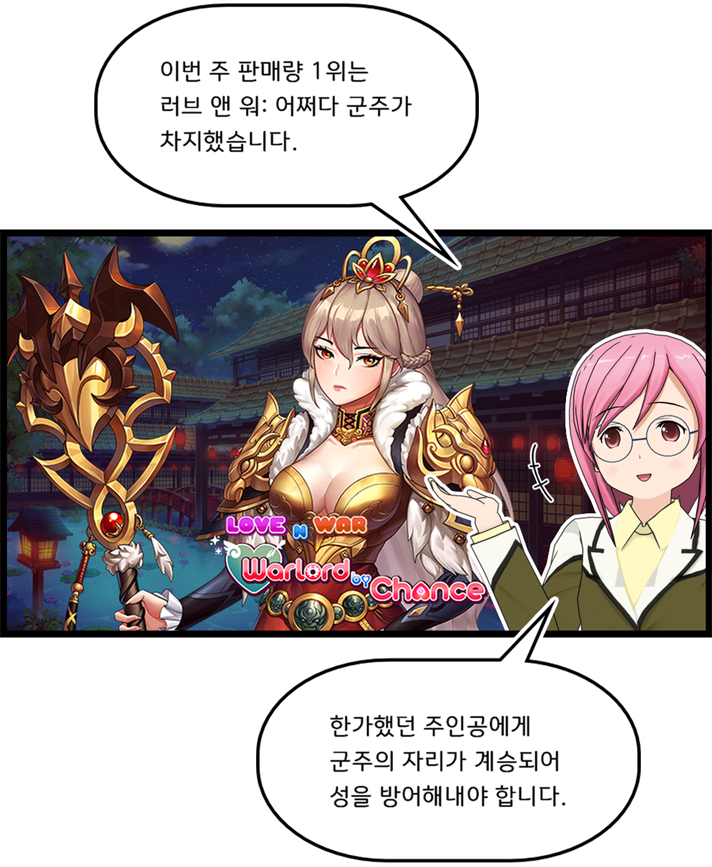 러브 앤 워는 3편을 예고해놓고는 기약이 없네요. 의외로 할만해서 1~2편 모두 달리고 바로 찜해놨는데 ㅠㅠ