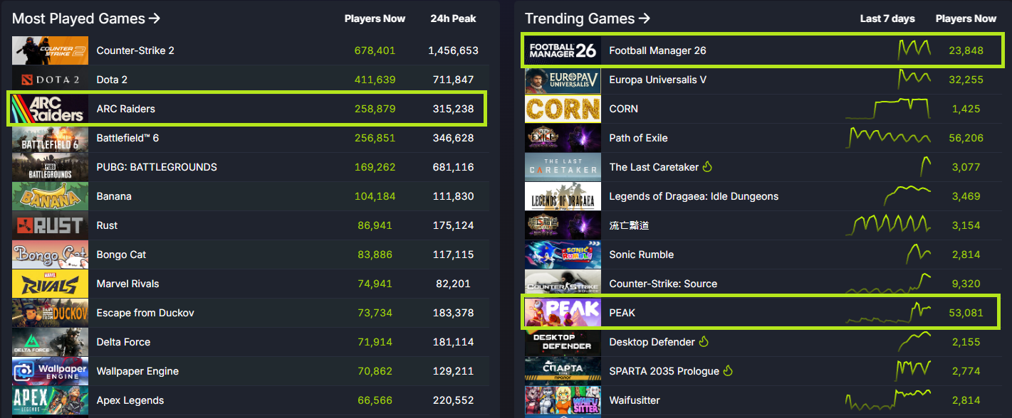 😶🌫️ [금주의 스팀 요약] 너무 많은 유저에 로그인 대기열까지 만든 ‘아크 레이더스’